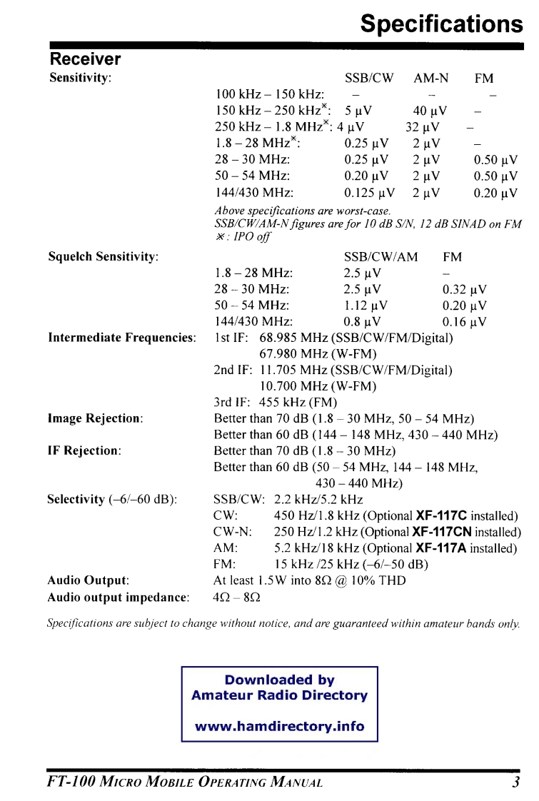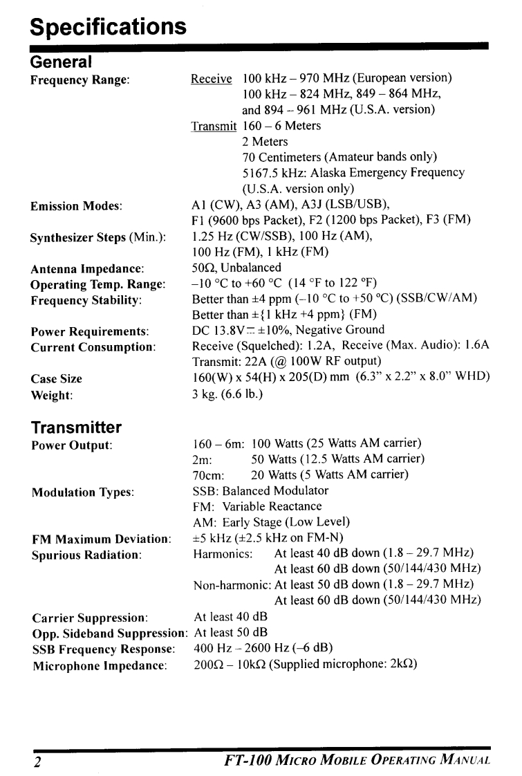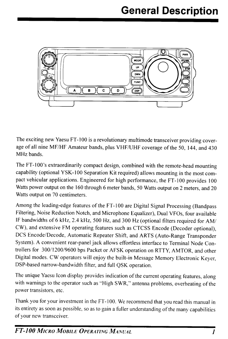 SYAESUFT-100DOPERATING MANUALDownloaded byAmateur Radio Directorywww.hamdirectory.infoMICRO MOBILEYAESU MUSEN CO.,LTD.4-8-8 Nakameguro,Meguro-Ku,Tokyo 153-8644,JapanYAESU U.S.A.17210 Edwards Rd.,Cerritos,CA 90703,U.S.A.YAESU EUROPE B.V.P.O.Box 75525 1118 ZN,Schiphol,The NetherlandsYAESU UK LTD.Unit 12,Sun Valley Business Park,Winnall CloseWinchester,Hampshire,SO23.0LB,U.K.YAESU GERMANY GmbHAm Kronberger Hang 2,D-65824 Schwalbach,GermanyYAESU HK LTD.11th Floor Tsim Sha Tsui Centre,66 Mody Rd.,Tsim Sha Tsui East,Kowloon,Hong Kong
