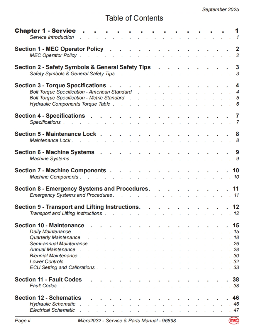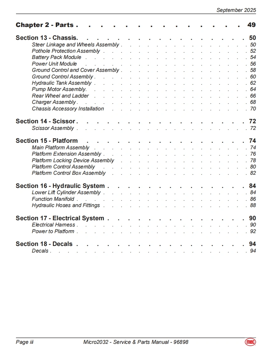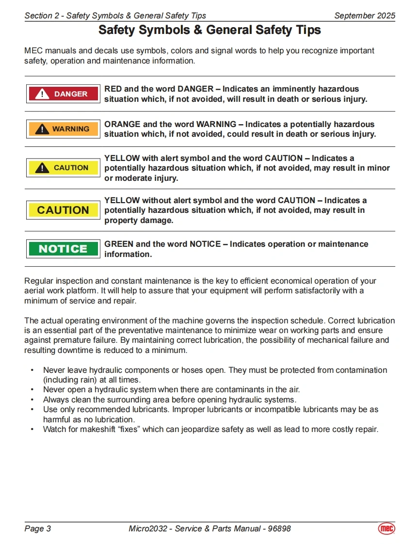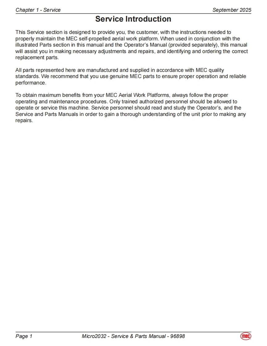mec-Servic-ce—Parts-Manual-Micro2032维修图纸手册零部件选型手册找手册网昨天发布关注私信11.45MB104页048mec-Servic-ce—Parts-Manual-Micro2032维修图纸手册零部件选型手册此内容为付费资源,请付费后查看¥19¥21黄金会员免费钻石会员免费立即购买您当前未登录!建议登陆后购买,可保存购买订单付费资源 第1页 / 共104页 第2页 / 共104页 第3页 / 共104页 第4页 / 共104页 第5页 / 共104页 第6页 / 共104页 第7页 / 共104页 第8页 / 共104页 第9页 / 共104页 第10页 / 共104页 试读已结束,还剩94页,您可下载完整版后进行离线阅读 THE END利勃海尔/Swift/Mec 文本预览 mecService Parts ManualMicro2032世盛Meets requirements of ANSI A92.20-2020 and CSA B354.6-2019.Part 96898Serial Number Range 20100025-UpSeptember 2025 查看更多 收起部分 喜欢就支持一下吧收藏