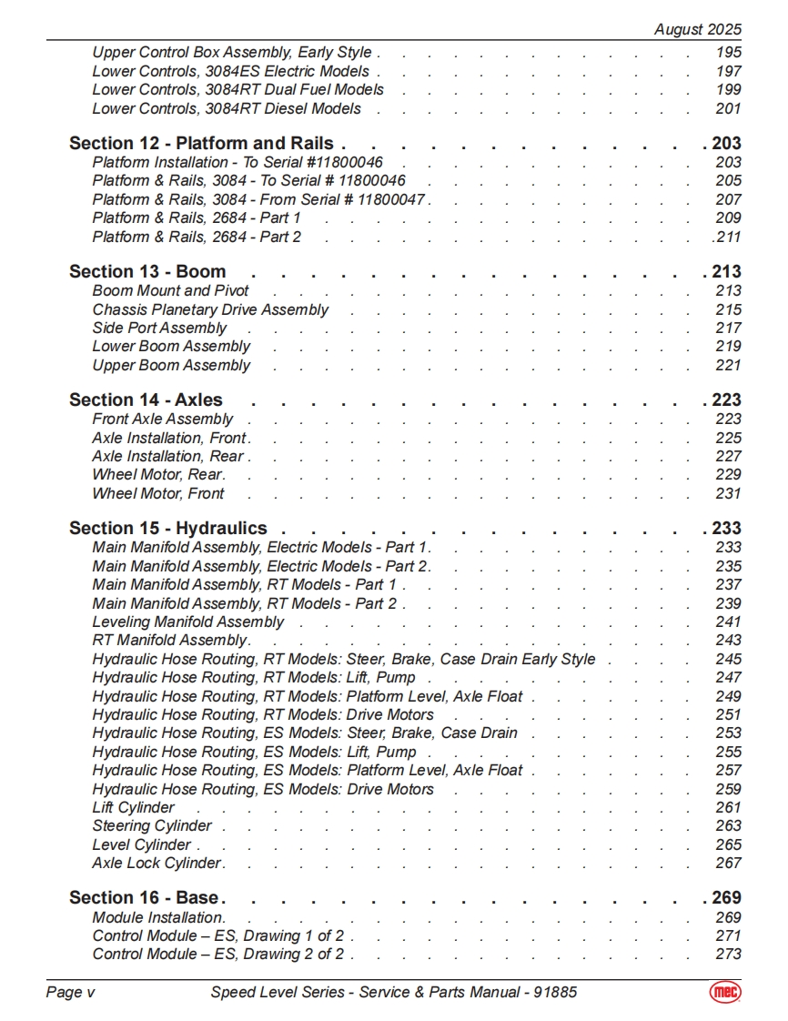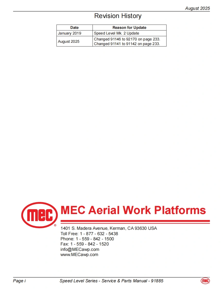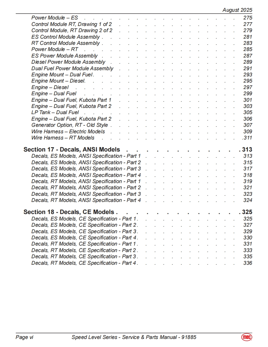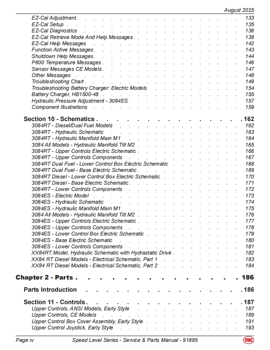 mecService Parts ManualSpeed Level SeriesRT-Internal Combustion2684ES Serial Number Range 12700000-UpPart#91885ES-Electric2684RT Serial Number Range 12800000-UpAugust 20253084ES Serial Number Range 11700000-Up3084RT Serial Number Range 11800000-Up