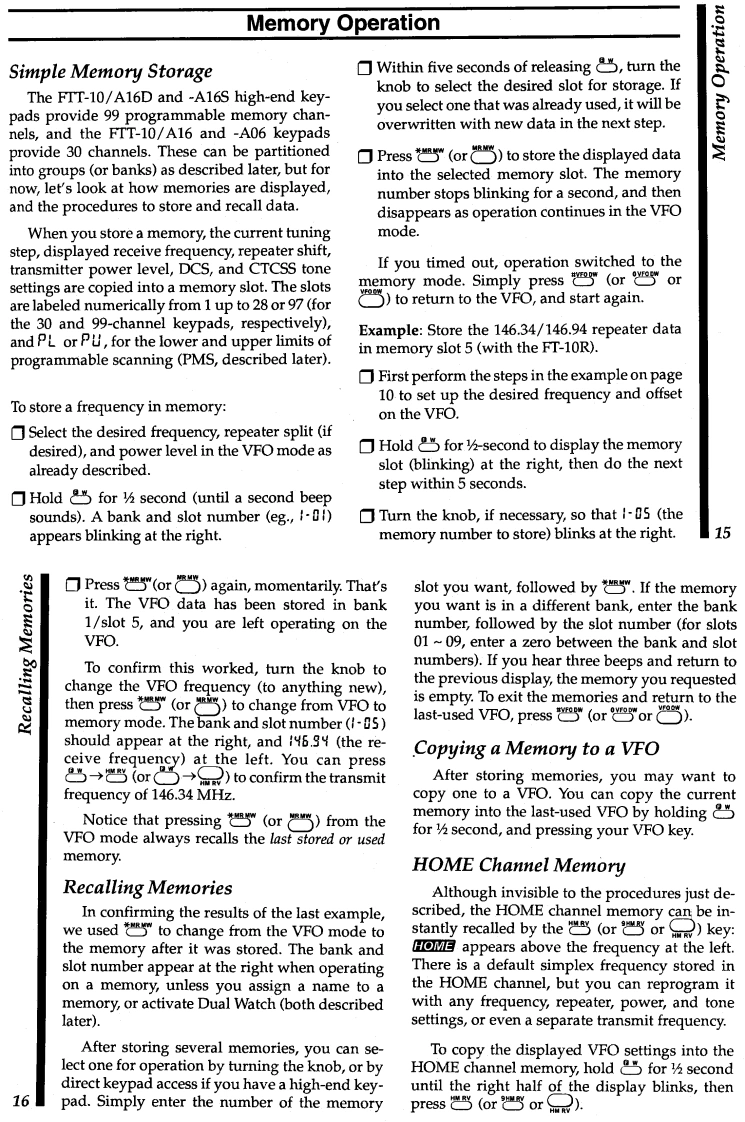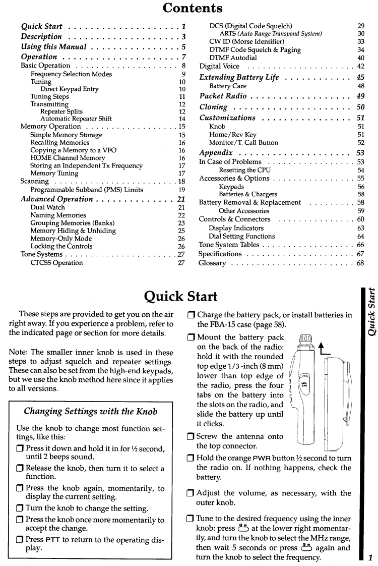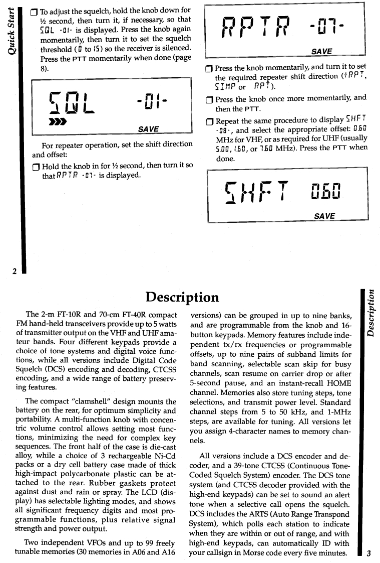 FT-10R(VHF)0FT-40R(UHF)Hand-Held Transceiverswith Digital Voice OptionDownloaded by□Amateur Radio Directory▣www.hamdirectory.infoImportant Notice!FT-10/-40 Receive Frequency Range ExpansionPlease Note:The normal receive frequency coverage is 140-174 MHz(FT-10)or 420~470 MHz (FT-40).If you reset the transceiver,the frequencyrange returns to the factory-default limits(144-148 MHz,or 430-450 MHz).Should this occur,perform the following steps to restore the expandedfrequency range:☐Turn off the radio.Press down the top DIAL knob while simultaneously pressing the side-mounted LAMP button as you turn on the radio.Repeating this procedure erases all memories,and returns amateur-onlyband limitsE06985000