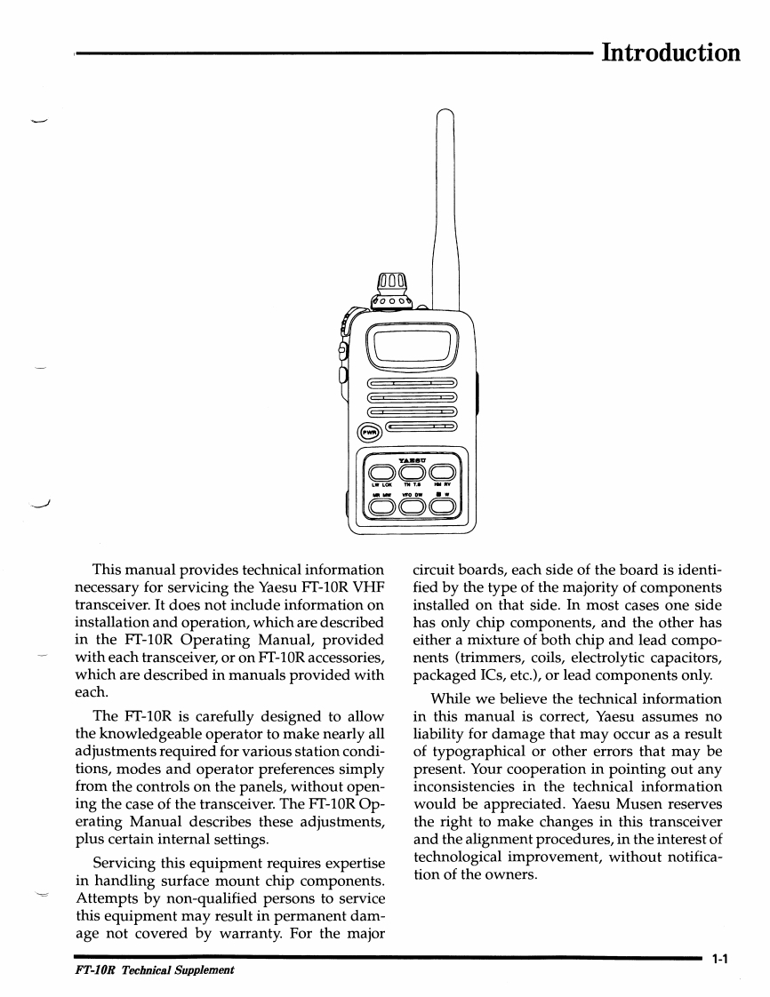 YAESUFT-10RVHF TransceiverTechnical Supplement00YAESU MUSEN CO.,LTD.1-20-2 Shimomaruko,Ota-Ku,Tokyo 146,JapanYAESU U.S.A.17210 Edwards Rd.,Cerritos,CA 90703,U.S.AYAESU INTERNATIONAL SALES(Caribbean,Central So.America)7270 NW 12th St.,Suite 320,Miami,FL 33126,U.S.A.YAESU EUROPE B.V.Snipweg 3,1118DN Schiphol,The Netherlands国YAESU U.K.LTD.Unit 2,Maple Grove Business CentreLawrence Rd.,Hounslow,Middlesex,TW4 6DR,U.K.YAESU GERMANY GmbHAm Kronberger Hang 2,D-65824 Schwalbach,GermanyYAESU HK LTD.11/Floor Tsim Sha Tsui Centre,66 Mody Rd.,Tsim Sha Tsui East,Kowloon,Hong KongScanned by W9CR