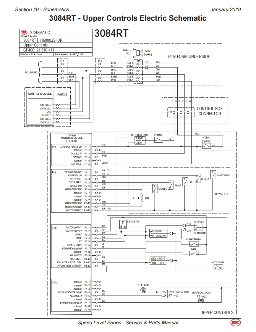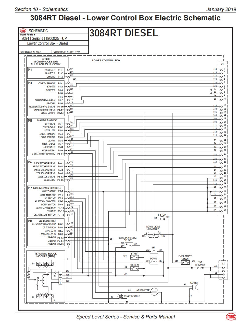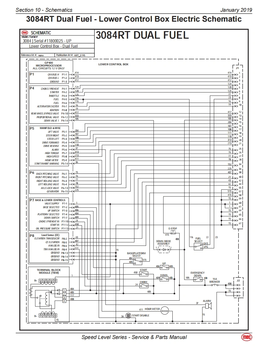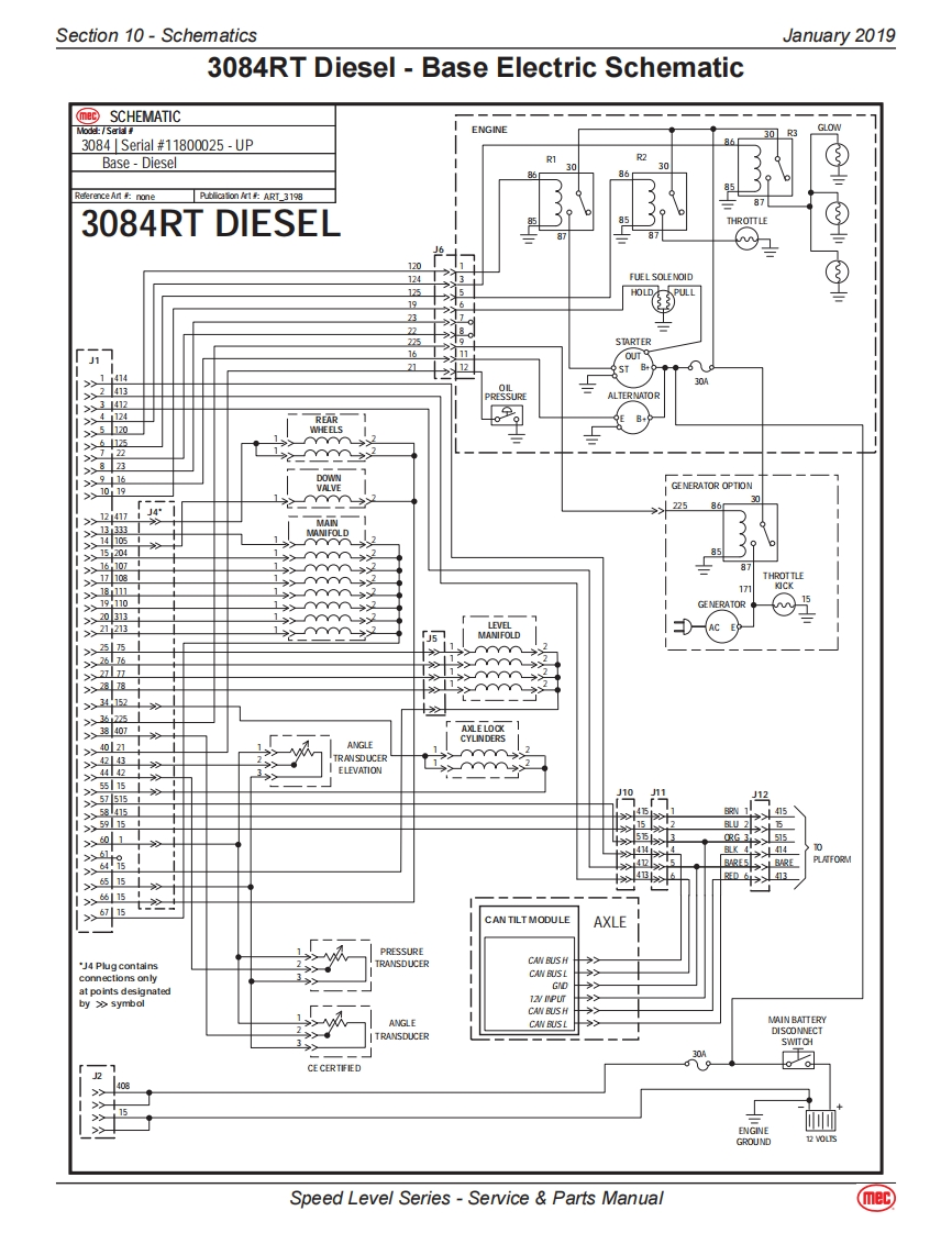 Section 10-SchematicsJanuary 20193084RT-Diesel/Dual Fuel ModelsHydraulic-3084RTThe following table applies to the next 3 pages.CalloutDescriptionCalloutDescriptionMA-1MAIN MANIFOLDSTEERING COMPONENTSCBV1Counter Balance Valve.DriveCYL1Steer Cylinder,RightCBV2Counter Balance Valve,DriveCYL2Steer Cylinder,LeftCL1Coil-Speed/Torque/Steer Valves #8TILT COMPONENTSCL2Coil Lift Valve #10MA-2Combination Valve Manifold-TiltCV1Check Valve.Load Sense Steer LeftCV3Check Valve.Tilt.Side/Side Load SenseCV2Check Valve,Load Sense Steer RightCV4Check Valve,Tilt,Front/Rear Load SenseEC1Priority Flow ControlCV5Check Valve,10 PSI Oscillating axleEP1Piloted Poppet Valve-Torque/SpeedCV6Check Valve,Tilt Cyl,Front/RearEP2Piloted Poppet Valve-Torque/SpeedCV7Check Valve,Tilt Cyl,Front/RearFD1Flow Divider/CombinerCV8Check Valve,Tilt Cyl,Side/SideFD2Flow Divider/CombinerCV9Check Valve,Tilt Cyl,Side/SideHP1Hand Pump,Brake ReleaseCYL4Tilt Cylinder,Front/RearLS1Load Sense Shuttle ValveCYL5Tilt Cylinder,Side/SideLS2Load Sense Shuttle ValveCYL6Axle Lock CylinderLS3Load Sense Shuttle ValveCYL7Axle Lock CylinderMP1Manual Push Brake Release ValveORF4Orifice,0.040,Tilt,Side/Side0D1Orifice Disc,Brakes,0.035ORF5Orifice,0.040,Tilt,Front/RearOPL1Orifice Plug,Steering,0.087RV3Relief Valve,Tilt Cyl Front/Rear,2500 PSIOPL2Orifice Plug,Flow Divider Bleed,0.025RV4Relief Valve,Tilt Cyl Front/Rear,2500 PSIOPL3Orifice Plug,Flow Divider Bleed,0.025RV5Relief Valve,Tilt Cyl Side/Side,2500 PSIORF1Orifice,Steering,0.064RV6Relief Valve,Tilt Cyl Side/Side,2500 PSIORF2Orifice,Lift,0.093SV8Spool Valve,Tilt Front/RearPD1Pilot Valve,Series Parallel,4-Way 3-PositionSV9Spool Valve,Tilt Side/SidePD2Pilot Valve,Series Parallel,4-Way /3-PositionLIFT COMPONENTSPD3Pilot Valve,Series Parallel,4-Way /3-PositionMA-3Lift Cylinder ManifoldPLG4Port PlugCYL3Lift CylinderPLG6Port PlugORF3Orifice,0.067 DescendRV1Relief Valve,Lift,2500 PSISV5Solenoid Valve,12V,Dual CoilRV2Relief Valve,Steering,2000 PSIWheel MotorsSP1Proportional ValveLFWheel Motor-Left FrontSV1Spool Valve,Lift.3-WayLRWheel Motor w/Brake-Left RearSV2Spool Valve.Steer,4-Way /3-PositionRFWheel Motor-Right FrontSV3Spool Valve,Series Parallel,4-Way/3-PositionRRWheel Motor w/Brake-Right RearSV4Spool Valve.Series Parallel.4-Way/3-PositionSV6Spool Valve-Right Wheel Motor BypassSVD1Spool Valve,Drive,4-Way /3-PositionSV7Spool Valve-Left Wheel Motor BypassRESERVOIRFL1Filter,10 Micron,Fluid ReturnP1Pump,Hydraulic FluidSpeed Level Series-Service Parts Manual(mec)