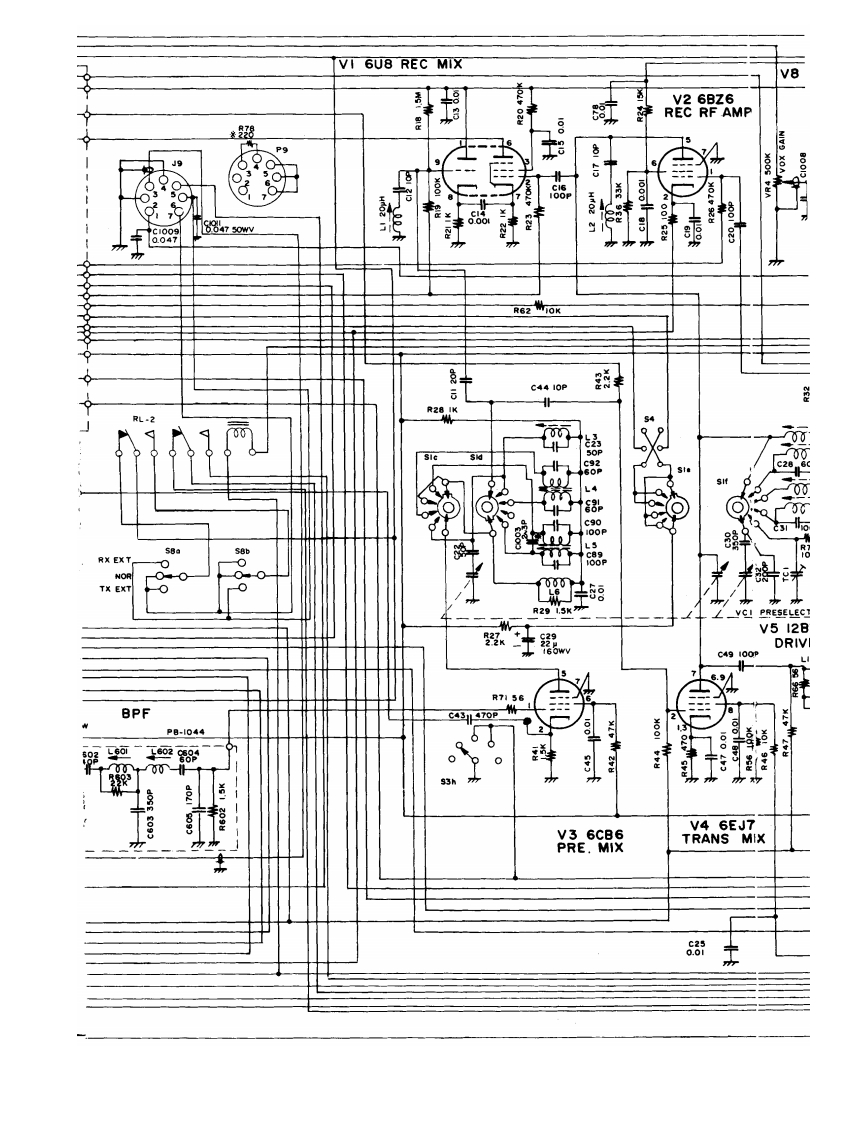 VIOI 6BM8mo DRIV and PA次VI02g_ISSB CWPHONES18c102器RPB-1066B109VOLT REGD5015336R501390链215152AF GAINVR50310K8387V1O6 12AU7CARRIER OSCc1360.01V102bR312w22K12AX7AC5050.0186品品药568R3L州33Kc38贤R6838州土R510I50AGC507VRIO2 IOK BAGC ADJVR50410TONE OSCD7C16400047TUNEcw08OFF7Q83f88688将1035VIO5 12AX7AMICAMP3VI077360BM66Downloaded by▣RadioAmateur.EU