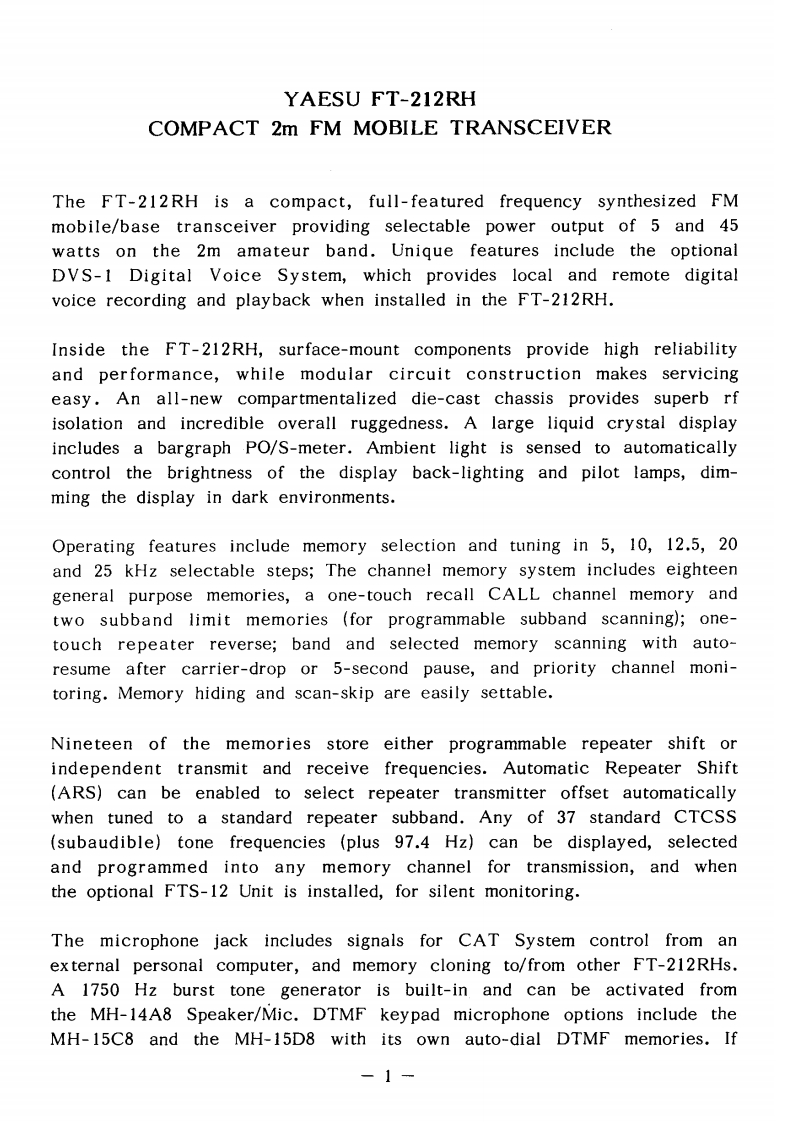 FT-212RH_user操作说明书手册找手册网23天前发布关注私信3.74MB51页047FT-212RH_user操作说明书手册此内容为付费资源,请付费后查看¥19¥21黄金会员免费钻石会员免费登录购买付费资源 第1页 / 共51页 第2页 / 共51页 第3页 / 共51页 第4页 / 共51页 第5页 / 共51页 第6页 / 共51页 第7页 / 共51页 第8页 / 共51页 第9页 / 共51页 第10页 / 共51页 试读已结束,还剩41页,您可下载完整版后进行离线阅读 THE END八重洲 文本预览 8TM3TMOPERATINGMANUALFT-212RHDownloaded byRadioAmateur.EU5000YAESU MUSEN CO.,LTD.C.P.O.BOX 1500AESUTOKYO,JAPAN 查看更多 收起部分 喜欢就支持一下吧收藏