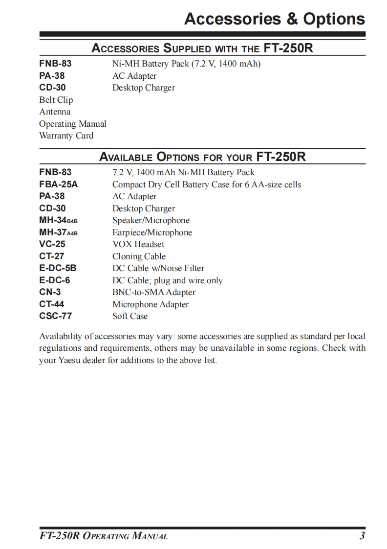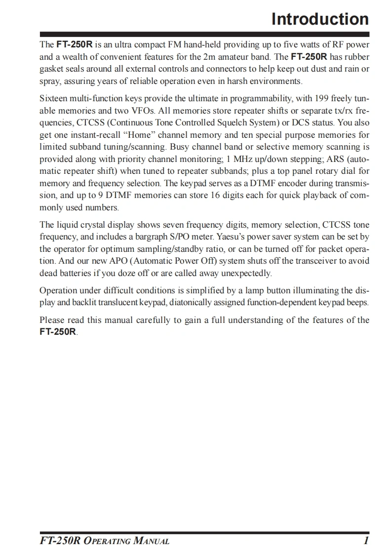 YAESUVHF FM TRANSCEIVERFT-250ROPERATING MANUAL910000YAESUVERTEX STANDARD CO.,LTD.4-8-8 Nakameguro,Meguro-Ku,Tokyo 153-8644,JapanVERTEX STANDARDUS Headquarters10900 Walker Street,Cypress,CA 90630,U.S.A.YAESU UK LTD.Unit 12,Sun Valley Business Park,Winnall CloseFT-2与0Winchester,Hampshire,SO23 OLB,U.K.VERTEX STANDARD HK LTD.Unit 5,20/F.,Seaview Centre,139-141 Hoi Bun Road,P1g8Kwun Tong,Kowloon,Hong Kong6oa四VERTEX STANDARD(AUSTRALIA)PTY.,LTD.Normanby Business Park,Unit 14/45 Normanby RoadNotting Hill 3168,Victoria,Australia
