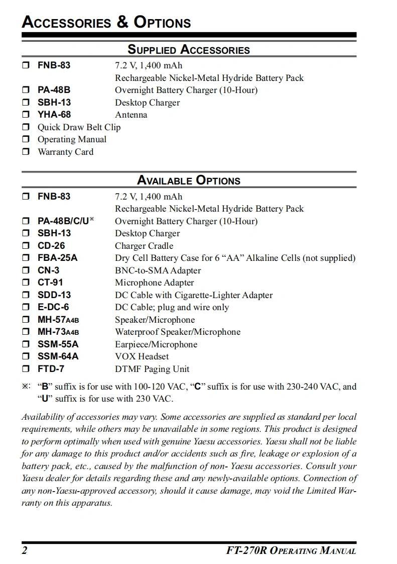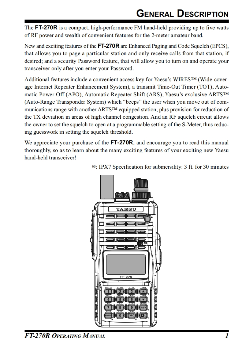 YAESUThe radioVHF FM TRANSCEIVERFT-270ROPERATING MANUALYAESU-8-"652☑as0DIBFT-270SQ TYP12】3YAESU MUSEN CO.,LTD.456Tennozu Parkside Building2-5-8 Higashi-Shinagawa,Shinagawa-ku,Tokyo 140-0002 Japan789REVYAESU USA0 VFO L6125 Phyllis Drive,Cypress,CA 90630,U.S.A.YAESU UKUnit 12.Sun Valley Business Park.Winnall CloseWinchester,Hampshire,SO23 0LB,U.K.
