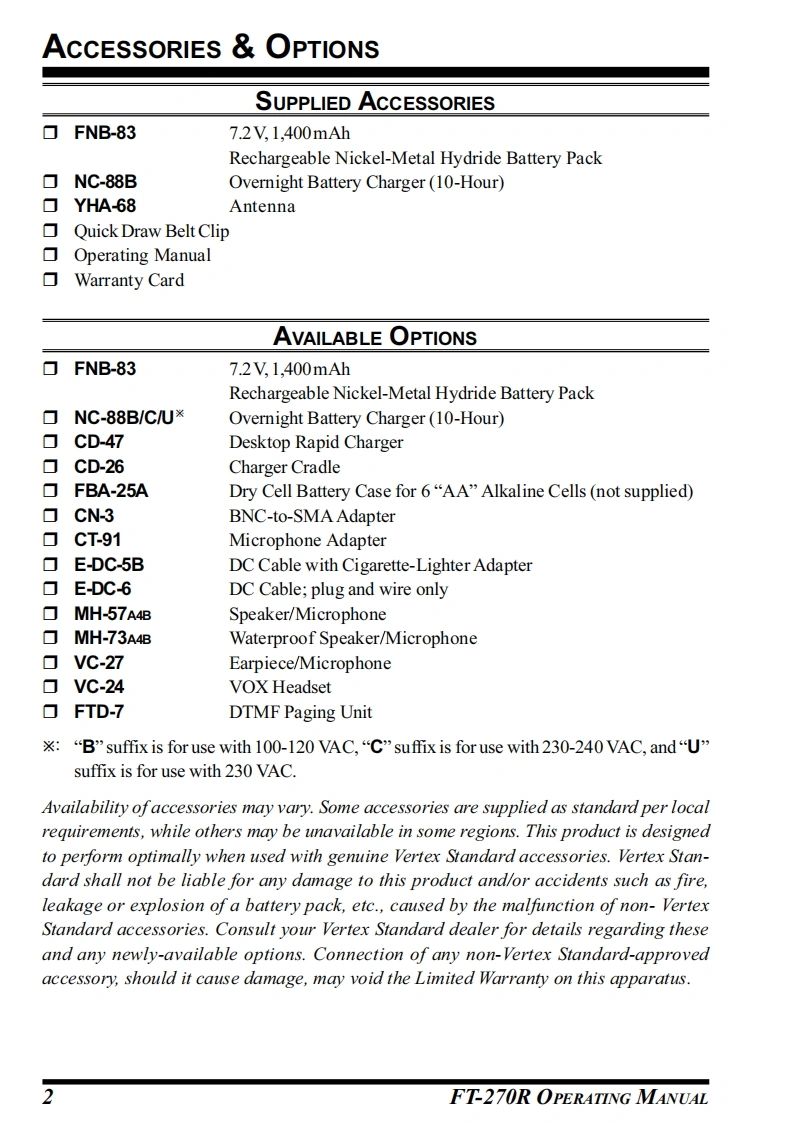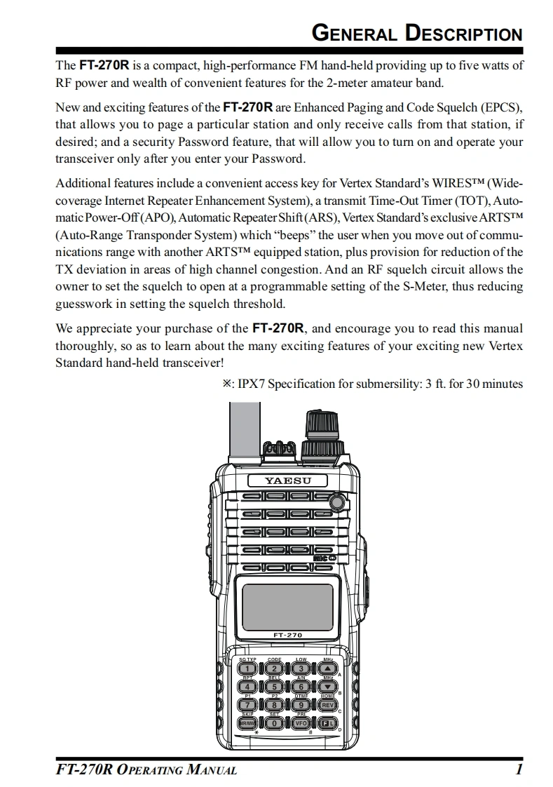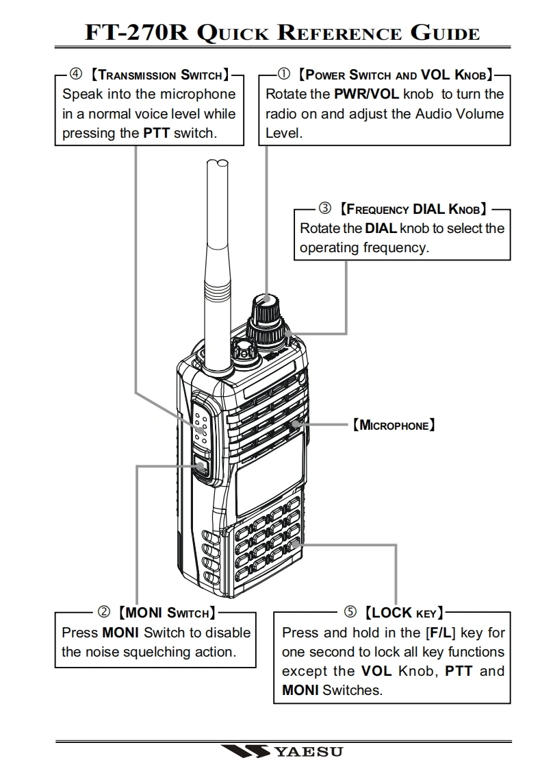YAESUVHF FM TRANSCEIVERFT-270ROPERATING MANUALYAESU-8-"6520VERTEX STANDARD CO.,LTD.4-8-8 Nakameguro,Meguro-Ku,Tokyo 153-8644,Japan口■■■■包■■VERTEX STANDARDFT-270US Headquarters10900 Walker Street,Cypress,CA 90630,U.S.A.3YAESU UK LTD.2Unit 12,Sun Valley Business Park,Winnall CloseWinchester,Hampshire.SO23 OLB.U.K.456VERTEX STANDARD HK LTD9REVUnit 5,20/F.,Seaview Centre,139-141 Hoi Bun Road,Kwun Tong.Kowloon,Hong Kong0VFOVERTEX STANDARD(AUSTRALIA)PTY.,LTD.Normanby Business Park,Unit 14/45 Normanby RoadNotting Hill 3168,Victoria.Australia