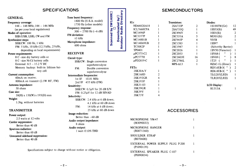 FT-290R_Manual操作说明书手册找手册网23天前发布关注私信2.63MB33页026FT-290R_Manual操作说明书手册此内容为付费资源,请付费后查看¥19¥21黄金会员免费钻石会员免费登录购买付费资源 第1页 / 共33页 第2页 / 共33页 第3页 / 共33页 第4页 / 共33页 第5页 / 共33页 第6页 / 共33页 第7页 / 共33页 第8页 / 共33页 第9页 / 共33页 第10页 / 共33页 试读已结束,还剩23页,您可下载完整版后进行离线阅读 THE END八重洲 文本预览 INSTRUCTIONMANUALFT-290RYAESU ELECTRONICS CORP.Scanned by IW1AXR▣P.O.BOX 49Downloaded by□Amateur Radio DirectoryPARAMOUNT,CA 90723U.5.A.YAESU MUSEN CO.,LTD.C.P.O.BOX 1500YAESUTOKYO,JAPAN 查看更多 收起部分 喜欢就支持一下吧收藏