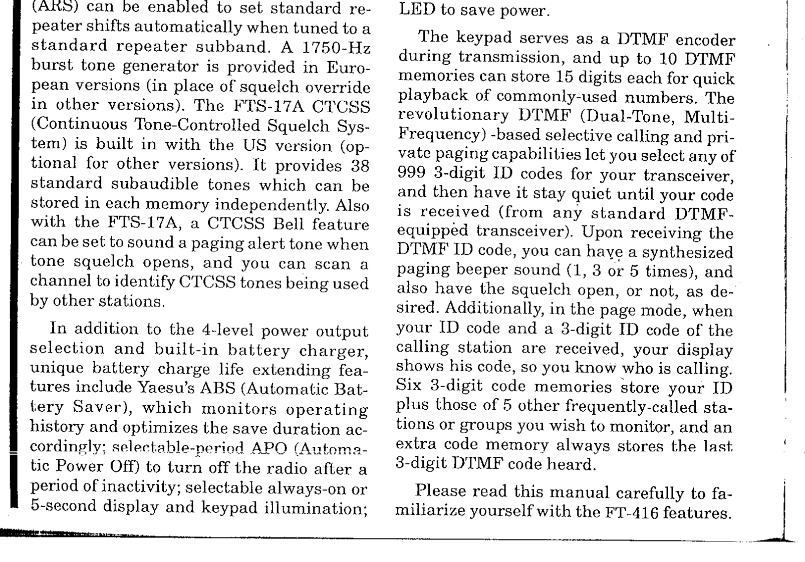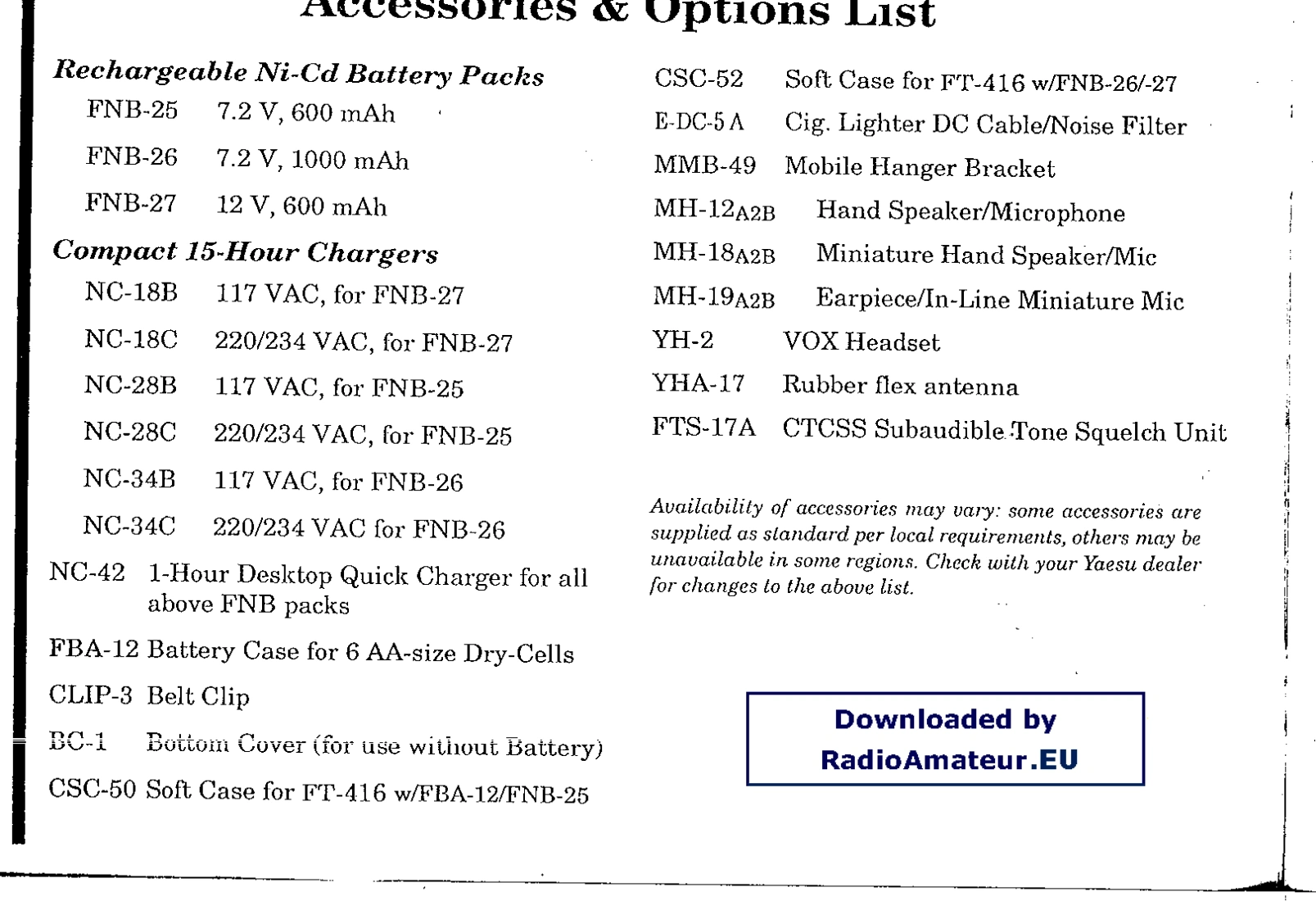 FT-416_user操作说明书手册找手册网23天前发布关注私信1.64MB49页046FT-416_user操作说明书手册此内容为付费资源,请付费后查看¥19¥21黄金会员免费钻石会员免费登录购买付费资源 第1页 / 共49页 第2页 / 共49页 第3页 / 共49页 第4页 / 共49页 第5页 / 共49页 第6页 / 共49页 第7页 / 共49页 第8页 / 共49页 第9页 / 共49页 第10页 / 共49页 试读已结束,还剩39页,您可下载完整版后进行离线阅读 THE END八重洲 文本预览 FT-416VHF Hand-HeldPaging TransceiverDownloaded byRadioAmateur.EU 查看更多 收起部分 喜欢就支持一下吧收藏