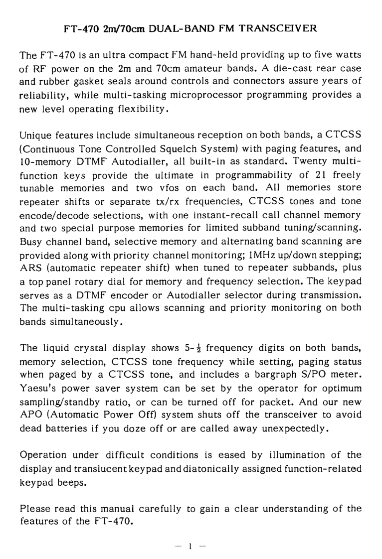 FT-470_user操作说明书手册找手册网23天前发布关注私信3.46MB36页023FT-470_user操作说明书手册此内容为付费资源,请付费后查看¥19¥21黄金会员免费钻石会员免费登录购买付费资源 第1页 / 共36页 第2页 / 共36页 第3页 / 共36页 第4页 / 共36页 第5页 / 共36页 第6页 / 共36页 第7页 / 共36页 第8页 / 共36页 第9页 / 共36页 第10页 / 共36页 试读已结束,还剩26页,您可下载完整版后进行离线阅读 THE END八重洲 文本预览 OPERATINGMANUALFT-470Downloaded byRadioAmateur.EUYAESU MUSEN CO.,LTD.C.P.0.B0X1500TOKYO,JAPAN 查看更多 收起部分 喜欢就支持一下吧收藏