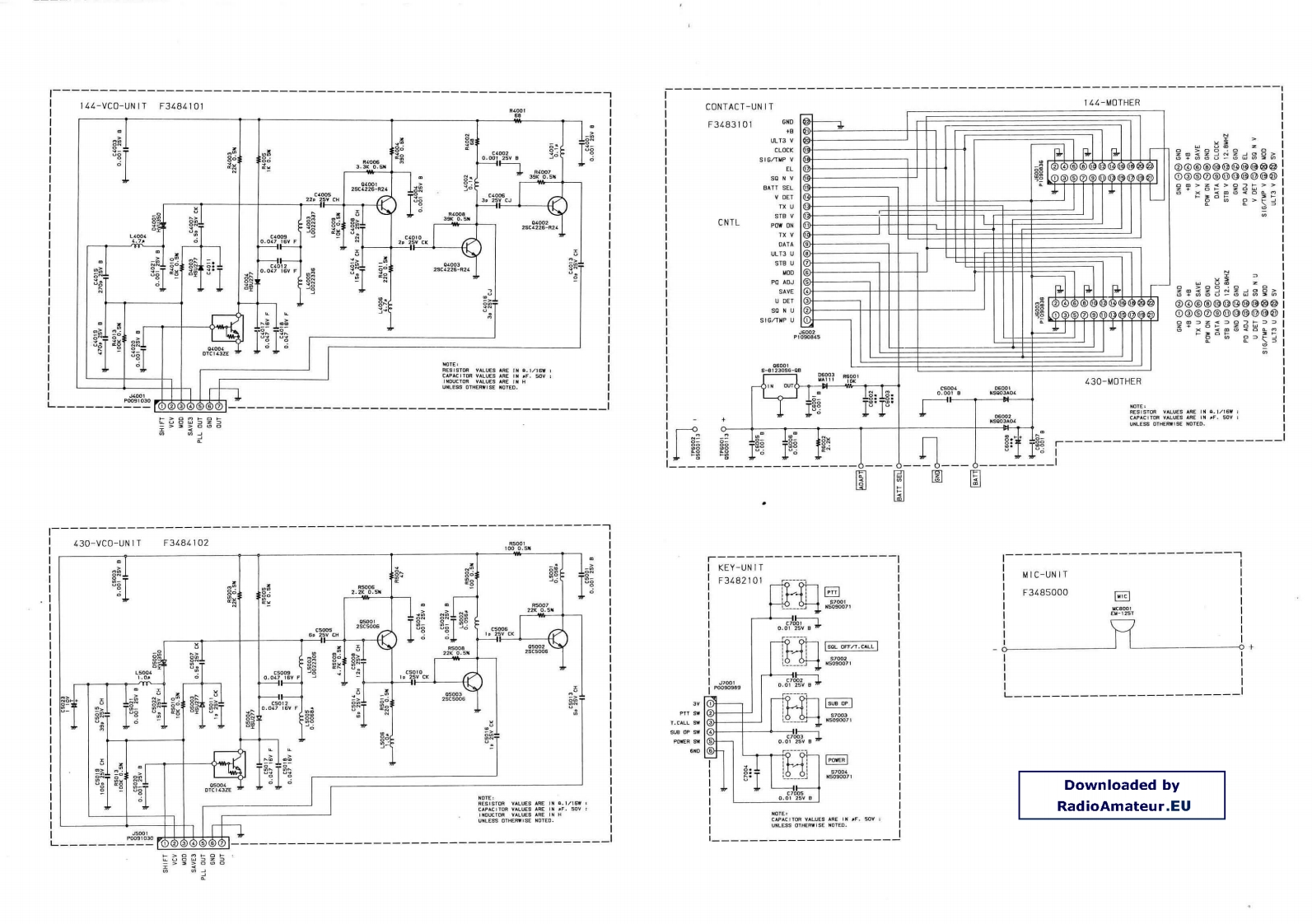 Downloaded byRadioAmateur.EUF3A8110120.一米米)F3483101(20.米CONTACT-UNITCONNECTION-DIAGRAMSIG/TENPFT-51R[ADATP可OCABLE F3486000BATT SEL⊙SIG/CircuitBATT%PON0ND.2米F34BO10l144-MOTHER-UNITSIG/TEMPULT3 YTDiagramSHIFTvevSAVE3SIG/TEMP(N0.3米米米F3479101430-MOTHER-UNITULT3)5V