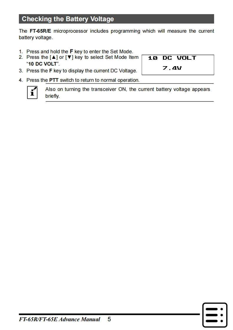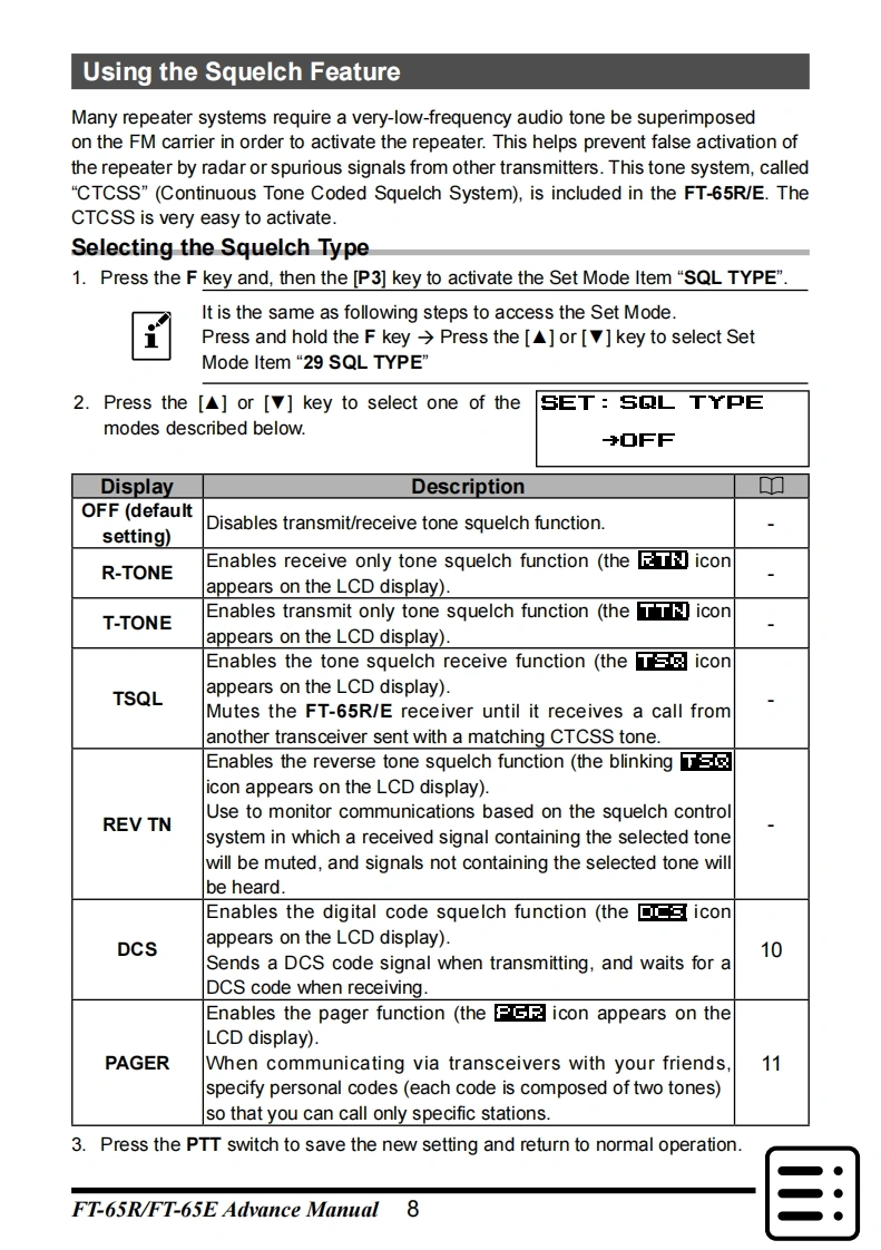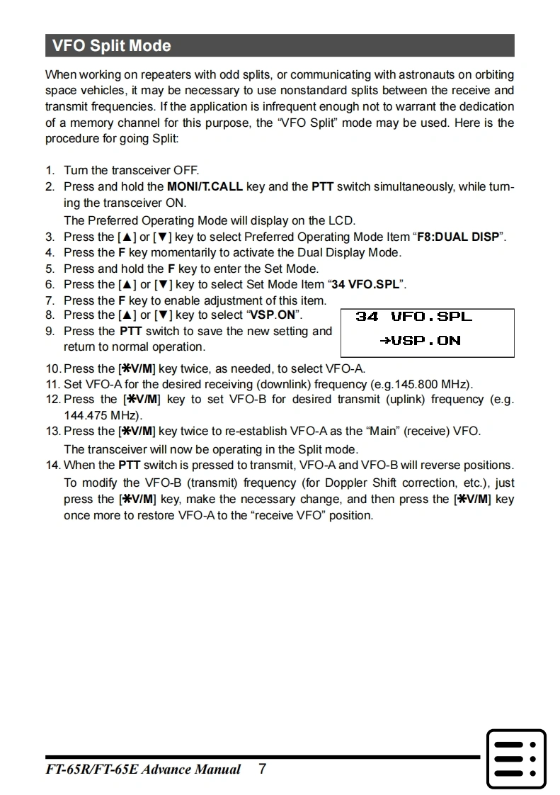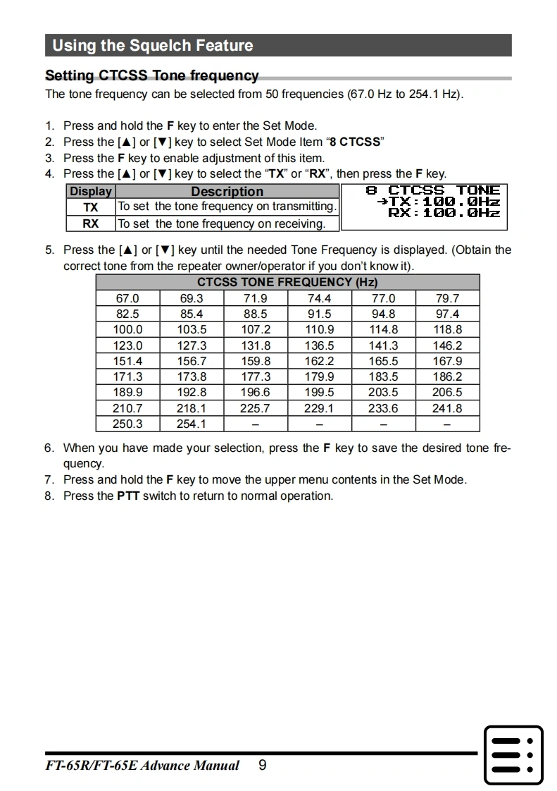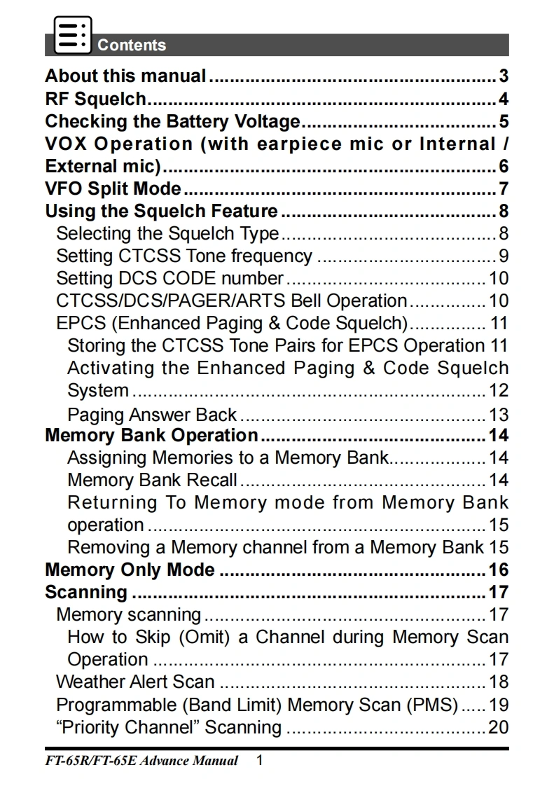 YADSUThe radio144/430MHzDUAL BAND TRANSCEIVERFT-65RFT-65EAdvance ManualYAESUDUAL BAND TRANSCEIVERFT-65446.500■■5■■■P1P2P3P412ABC3DEF4GHI5JKL6MNO7PORS8TUV9WXYZ米VIMOSET#BANDClicking(tapping)theat the bottom right of the current browsing pagewill return to the contents page at any time.