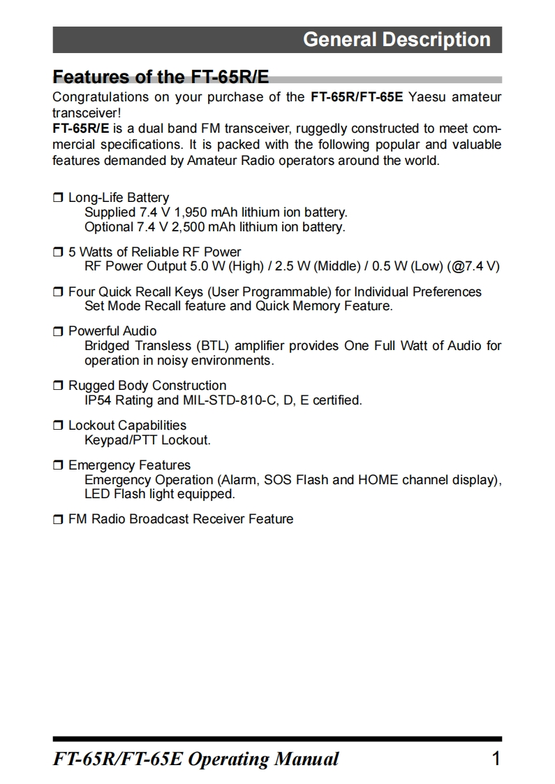 FT-65R_E_操作说明书手册_ENG_EH066M105_1710C-FC找手册网24天前发布关注私信7.36MB52页050FT-65R_E_操作说明书手册_ENG_EH066M105_1710C-FC此内容为付费资源,请付费后查看¥19¥21黄金会员免费钻石会员免费登录购买付费资源 第1页 / 共52页 第2页 / 共52页 第3页 / 共52页 第4页 / 共52页 第5页 / 共52页 第6页 / 共52页 第7页 / 共52页 第8页 / 共52页 第9页 / 共52页 第10页 / 共52页 试读已结束,还剩42页,您可下载完整版后进行离线阅读 THE END八重洲 文本预览 YAESUThe radio144/430MHzDUAL BAND TRANSCEIVERFT-65RFT-65EOperating ManualYAESUDUAL BAND TRANSCEIVERFT-65回446.500■■■■■■■P1P2P31P412ABC3DEF4GHI 5JKL6MNO7PORS 8TUV9wxYZ米VIMOSET #BAND 查看更多 收起部分 喜欢就支持一下吧收藏