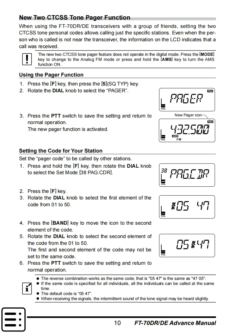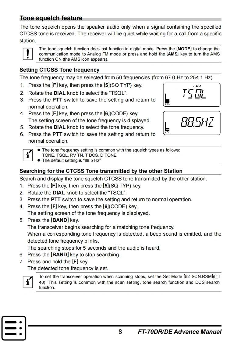 YAESUradioC4FM/FM 144/430MHzDIGITAL/ANALOG TRANSCEIVERFT-70DRFT-70DEAdvance ManualYAESU432.500银因君DigitalFT-70DFTX POSCANDTMBND DNMODE 1 2ABC 3 DEF BANDHMRy 4 GH 5L 6w V/MMs788w980Clicking(tapping)at theat the bottom left of the current browsing page.will return to the contents page at any time