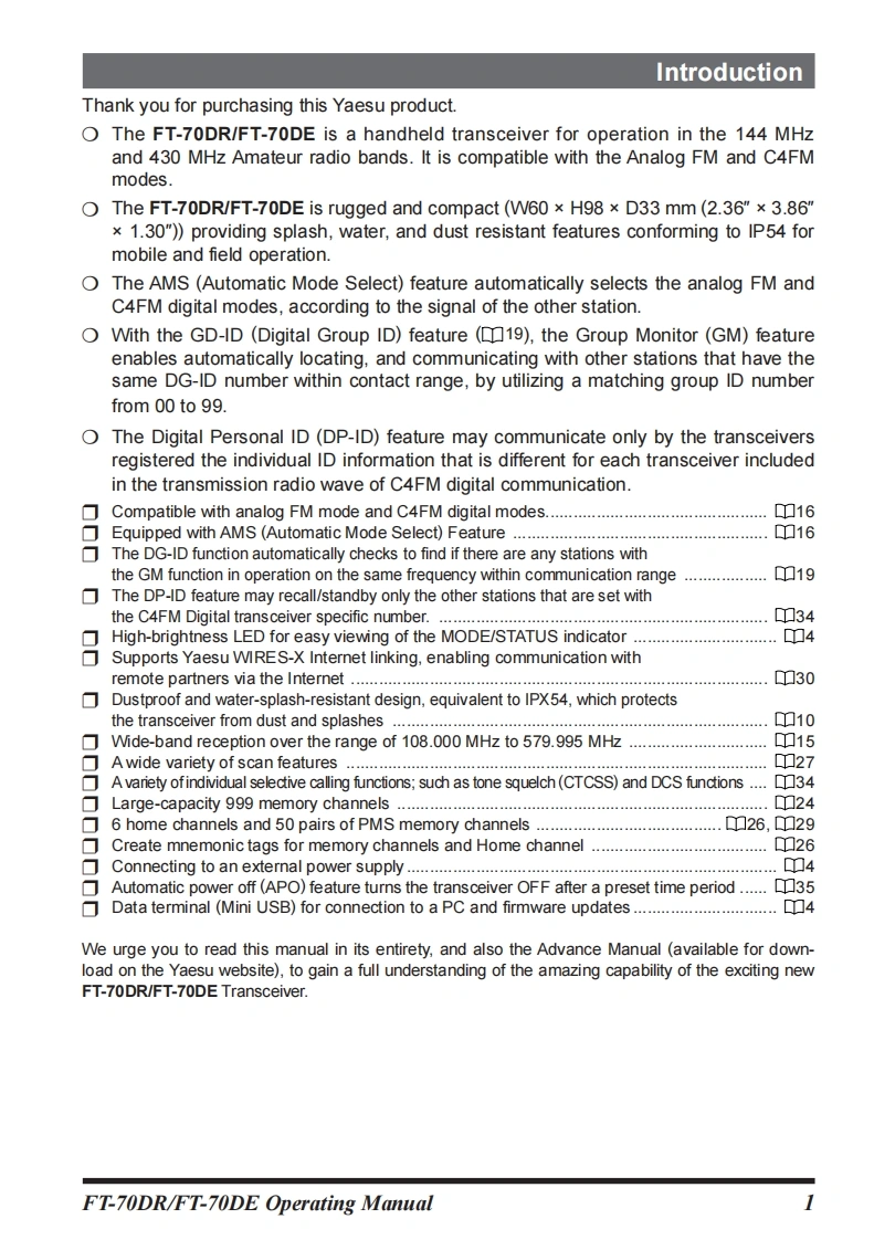 FT-70DR_DE_操作说明书手册_ENG找手册网24天前发布关注私信11.63MB44页030FT-70DR_DE_操作说明书手册_ENG此内容为付费资源,请付费后查看¥19¥21黄金会员免费钻石会员免费登录购买付费资源 第1页 / 共44页 第2页 / 共44页 第3页 / 共44页 第4页 / 共44页 第5页 / 共44页 第6页 / 共44页 第7页 / 共44页 第8页 / 共44页 第9页 / 共44页 第10页 / 共44页 试读已结束,还剩34页,您可下载完整版后进行离线阅读 THE END八重洲 文本预览 YAESUThe radioC4FM/FM 144/430MHzDIGITAL/ANALOG TRANSCEIVERFT-70DRFT-70DEOperating ManualYAESU46580.n银口君DigitalFT-70D、AMs目FTX POSCANM0oE1BANDSTEPSO TYPVIMP19M788w90 查看更多 收起部分 喜欢就支持一下吧收藏