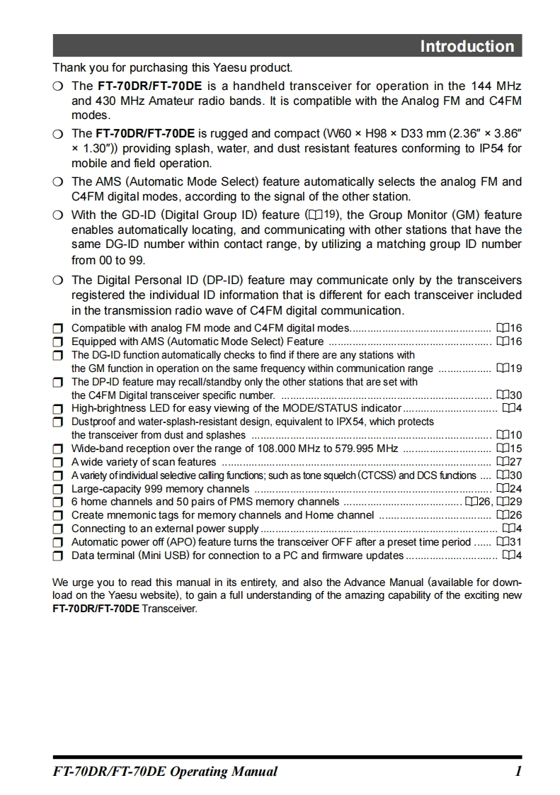 FT-70DR_DE_操作说明书手册_ENG_EH051M200_1706j-AO-1找手册网24天前发布关注私信10.98MB40页039FT-70DR_DE_操作说明书手册_ENG_EH051M200_1706j-AO-1此内容为付费资源,请付费后查看¥19¥21黄金会员免费钻石会员免费登录购买付费资源 第1页 / 共40页 第2页 / 共40页 第3页 / 共40页 第4页 / 共40页 第5页 / 共40页 第6页 / 共40页 第7页 / 共40页 第8页 / 共40页 第9页 / 共40页 第10页 / 共40页 试读已结束,还剩30页,您可下载完整版后进行离线阅读 THE END八重洲 文本预览 YAESUThe radioC4FM/FM 144/430MHzDIGITAL/ANALOG TRANSCEIVERFT-70DRFT-70DEOperating ManualYAESU432.500国银仔DigitalFT-70DFTX POSCAN2A3 DEFBANDSTEPHM/RV 4.GHa15m6uvoVIMP1AMs788w9竖0 查看更多 收起部分 喜欢就支持一下吧收藏