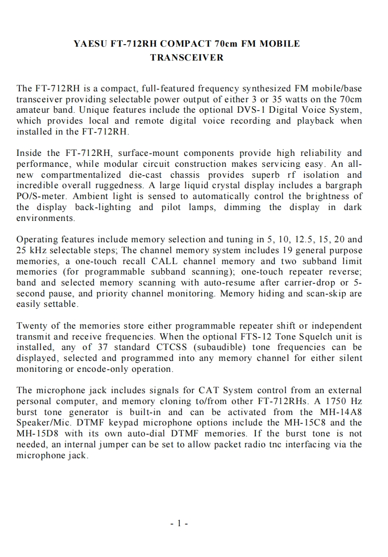 FT-712RH操作说明书手册找手册网23天前发布关注私信1.10MB42页047FT-712RH操作说明书手册此内容为付费资源,请付费后查看¥19¥21黄金会员免费钻石会员免费登录购买付费资源 第1页 / 共42页 第2页 / 共42页 第3页 / 共42页 第4页 / 共42页 第5页 / 共42页 第6页 / 共42页 第7页 / 共42页 第8页 / 共42页 第9页 / 共42页 第10页 / 共42页 试读已结束,还剩32页,您可下载完整版后进行离线阅读 THE END八重洲 文本预览 OPERATINGMANUALFT-712RHYAESU MUSEN CO.,LTD.C.P.O.BOX 1500YAESUTOKYO,JAPAN 查看更多 收起部分 喜欢就支持一下吧收藏