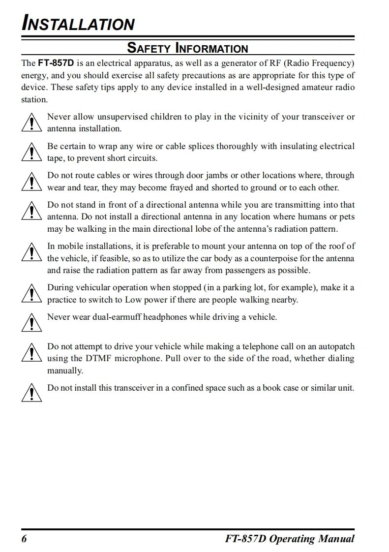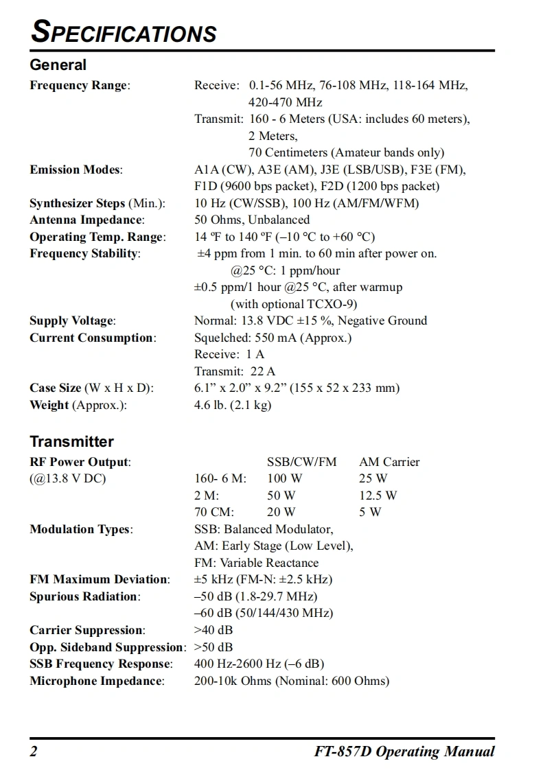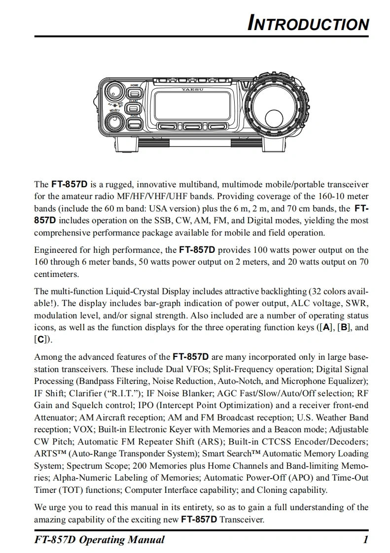 YAESUThe radioFT-857DHF/VHF/UHFULTRA-COMPACT TRANSCEIVEROPERATING MANUAL0000YAESU MUSEN CO.,LTD.Tennozu Parkside Building2-5-8 Higashi-Shinagawa,Shinagawa-ku,Tokyo 140-0002 JapanYAESU USA6125 Phyllis Drive,Cypress,CA 90630,U.S.A.YAESU UKUnit 12,Sun Valley Business Park,Winnall CloseWinchester,Hampshire,SO23 0LB,U.K.
