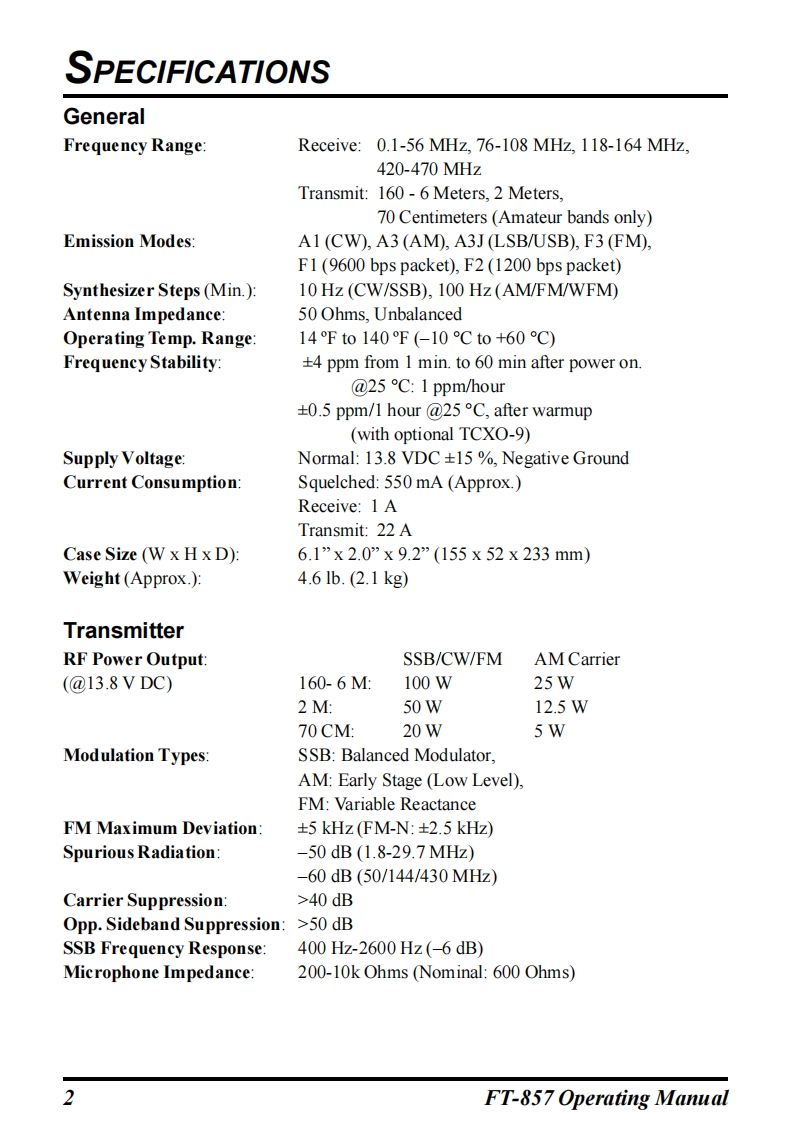 YAESUFT-857HF/VHF/UHFULTRA-COMPACT TRANSCEIVEROPERATING MANUALVERTEX STANDARD CO.,LTD.4-8-8 Nakameguro,Meguro-Ku,Tokyo 153-8644,JapanVERTEX STANDARDUS Headquarters10900 Walker Street,Cypress,CA 90630,U.S.AInternational Division8350 N.W.52nd Terrace,Suite 201,Miami,FL 33166,U.S.A.YAESU EUROPE B.V.P.O.Box 75525,1118 ZN Schiphol,The NetherlandsYAESU UK LTD.Unit 12,Sun Valley Business Park,Winnall CloseWinchester,Hampshire,SO23 0LB,U.K.VERTEX STANDARD HK LTD.Unit 5,20/F.,Seaview Centre,139-141 Hoi Bun Road,Kwun Tong,Kowloon,Hong Kong