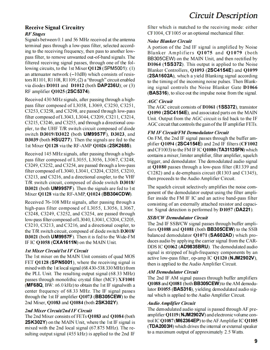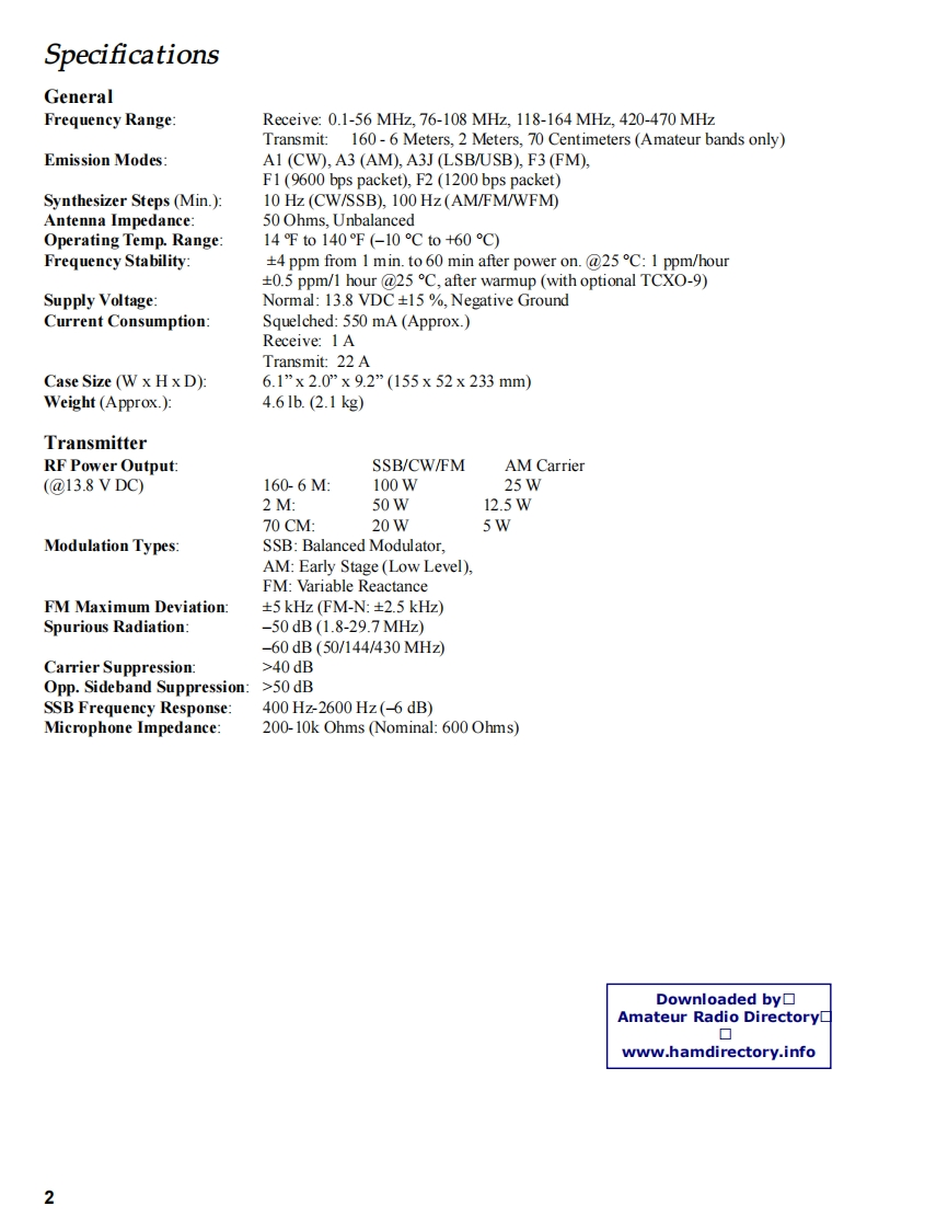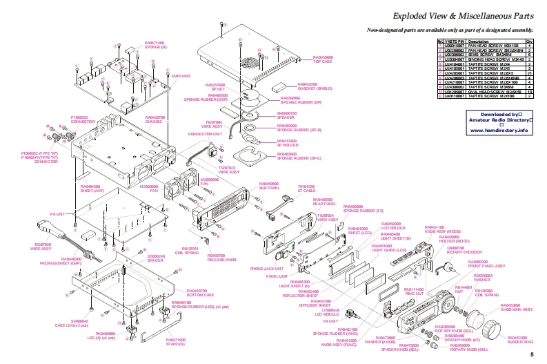 YAESUVERTEX STANDARD CO.,LTD.4-8-8 Nakameguro,Meguro-Ku,Tokyo 153-8644,JapanVERTEX STANDARDHF/VHF/UHFUS Headquarters10900 Walker Street,Cypress,CA 90630,U.S.A.International DivisionULTRA-COMPACT TRANSCEIVER8350 N.W.52nd Terrace.Suite 201.Miami.FL 33166.U.S.A.YAESU EUROPE B.V.FT-857P.O.Box 75525,1118 ZN Schiphol,The NetherlandsYAESU UK LTD.Unit 12.Sun Valley Business Park,Winnall CloseTechnical SupplementWinchester,Hampshire,SO23 OLB,U.K.VERTEX STANDARD HK LTD.2003 VERTEXSTANDARD CO.,LTDEHOO7M90AUnit 5,20/F.,Seaview Centre,139-141 Hoi Bun Road,Kwun Tong,Kowloon,Hong KongA四U可IntroductionThis manual provides technical information necessary for servicing the FT-857 HF/VHF/UHF Ultra-Compact TransceiverServicing this equipment requires expertise in handling surface-mount chip components.Attempts by non-qualified per-sons to service this equipment may result in permanent damage not covered by the warranty,and may be illegal in somecountriesTwo PCB layout diagrams are provided for each double-sided circuit board in the Transceiver.Each side of is referred toby the type ofthe majority of components installed on that side ("leaded"or"chip-only").In most cases one side has onlychip components,and the other has either a mixture of both chip and leaded components(trimmers,coils,electrolyticcapacitors,ICs,etc.),or leaded components only.While we believe the technical information in this manual to be correct,VERTEX STANDARD assumes no liability fordamage that may occur as a result of typographical or other errors that may be present.Your cooperation in pointing outany inconsistencies in the technical information would be appreciated.ContentsSpecifications.2 Board Unit (Schematics,Layouts&Parts)Exploded View Miscellaneous Parts......5MAIN Unit.2349Connection Diagram.PLL Unit…Bl0 ck Diagram…8PANEL Unit6Circuit Description9REF Unit.3PHONE-JACK Unit..74VR Unit..8CONNECTOR Unit..76Downloaded by▣DSP-2Unit(Option)….77Amateur Radio DirectoryTCXO-9 Unit (Option)80www.hamdirectory.info