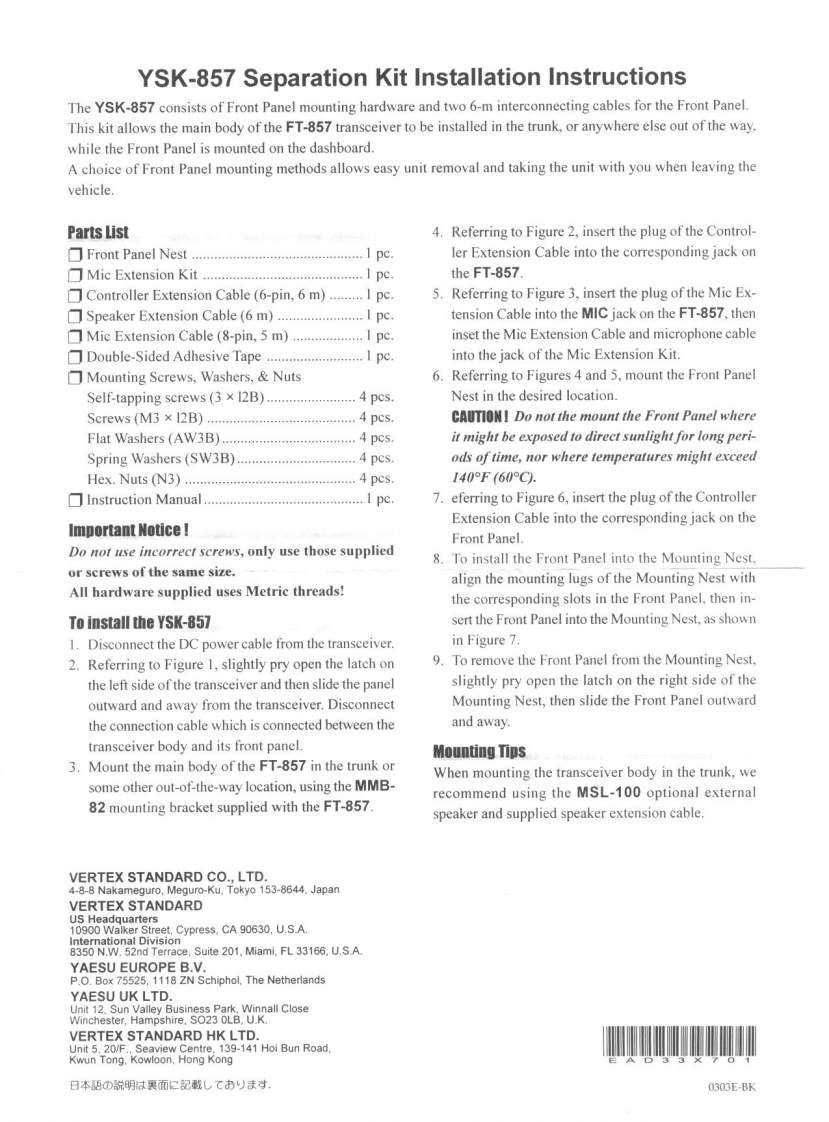 FT-857_YSK-857_使用说明书手册找手册网24天前发布关注私信0.39MB2页035FT-857_YSK-857_使用说明书手册此内容为付费资源,请付费后查看¥19¥21黄金会员免费钻石会员免费登录购买付费资源 第1页 / 共2页 第2页 / 共2页 已完成全部阅读,共2页 THE END八重洲 文本预览 Double-sided Adhesive TapeFigure 1Figure 5Controller Extension CableFigure 2Controller Extension CableFigure 6Mic Extension KitMic Extension CableMicrophone CableLatch knobFigure 3Flat WasherFigure 7Spring WasherSelf-tapping screwFigure 4 查看更多 收起部分 喜欢就支持一下吧收藏