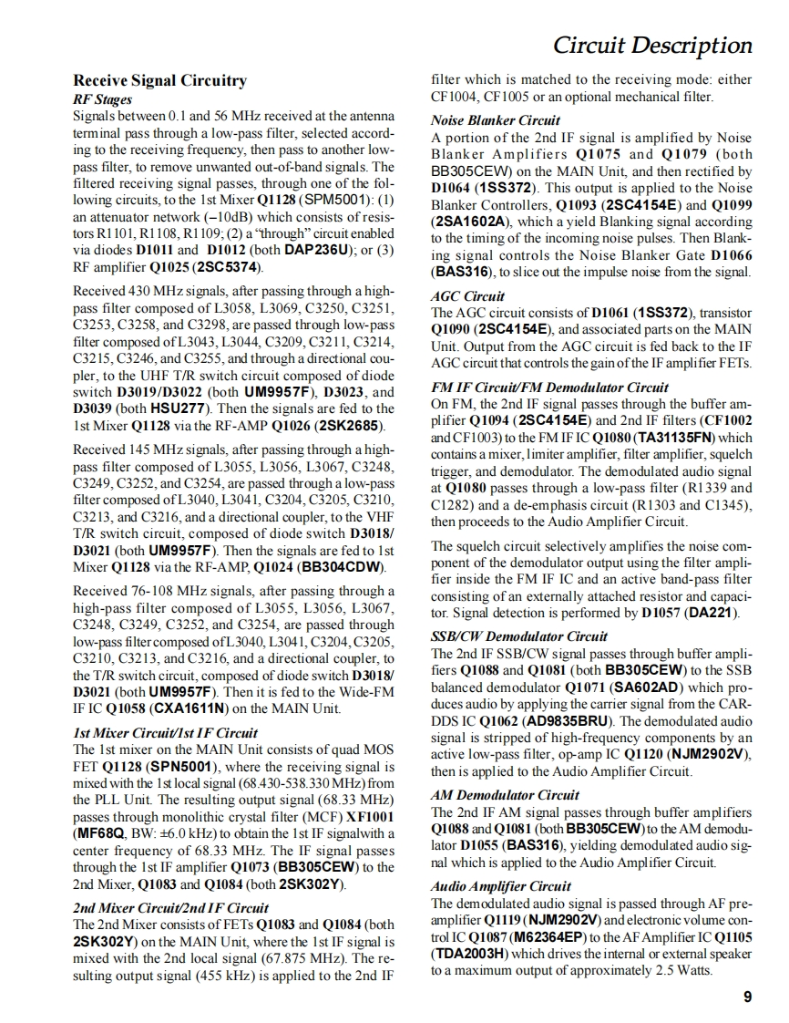 YAESUVERTEX STANDARD CO.,LTD.4-8-8 Nakameguro,Meguro-Ku,Tokyo 153-8644,JapanVERTEX STANDARDHF/VHF/UHFUS Headquarters10900 Walker Street,Cypress,CA90630,U.S.A.International DivisionULTRA-COMPACT TRANSCEIVER8350 N.W.52nd Terrace,Suite 201,Miami,FL 33166,U.S.A.YAESU EUROPE B.V.FT-857P.O.Box 75525,1118 ZN Schiphol,The NetherlandsYAESU UK LTD.Unit 12.Sun Valley Business Park,Winnall CloseTechnical SupplementWinchester,Hampshire,S023 OLB,U.K.VERTEX STANDARD HK LTD.2003 VERTEXSTANDARD CO.,LTDEH007M90AUnit 5,20/F.,Seaview Centre,139-141 Hoi Bun Road,Kwun Tong,Kowloon,Hong KongIntroductionThis manual provides technical information necessary for servicing the FT-857 HF/VHF/UHF Ultra-Compact TransceiverServicing this equipment requires expertise in handling surface-mount chip components.Attempts by non-qualified per-sons to service this equipment may result in permanent damage not covered by the warranty,and may be illegal in somecountriesTwo PCB layout diagrams are provided for each double-sided circuit board in the Transceiver.Each side of is referred toby the type ofthe majority of components installed on that side ("leaded"or"chip-only").In most cases one side has onlychip components,and the other has either a mixture of both chip and leaded components (trimmers,coils,electrolyticcapacitors,ICs,etc.),or leaded components only.While we believe the technical information in this manual to be correct,VERTEX STANDARD assumes no liability fordamage that may occur as a result of typographical or other errors that may be present.Your cooperation in pointing outany inconsistencies in the technical information would be appreciated.ContentsSpecifications.2Board Unit(Schematics,Layouts Parts)Exploded View Miscellaneous Parts......5MAIN Unit23PLL Unit…49Connection Diagram.Bl0 ck Diagram…8PANEL Unit6Circuit Description9REF Unit.3PHONE-JACK Unit..74Alignment…12CONNECTOR Unit..76DSP-2 Unit (Option).77TCXO-9Unit(Option)……80