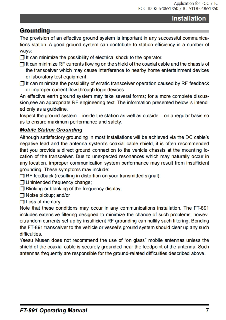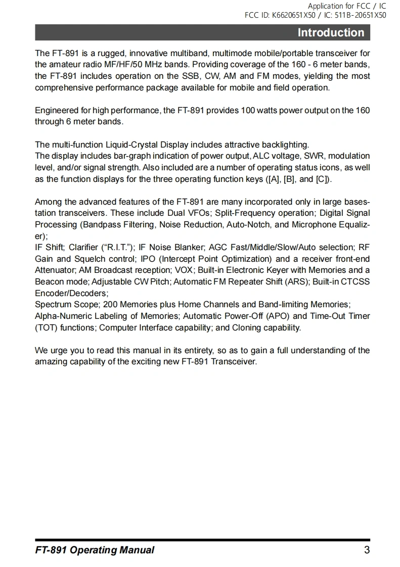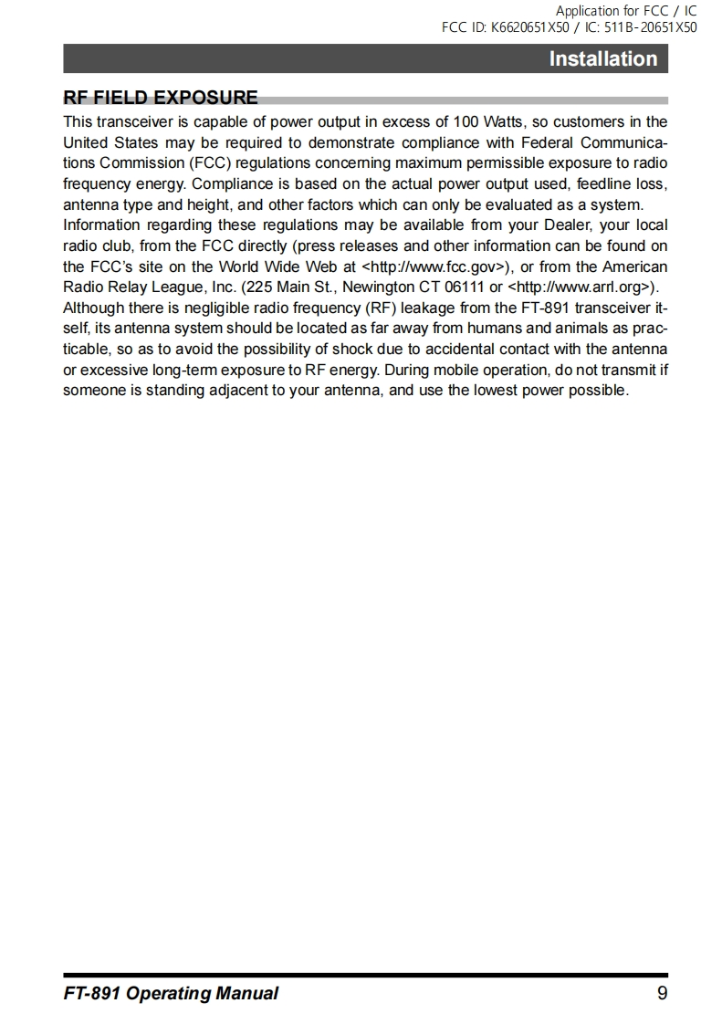 FT-891_使用操作说明书手册指南找手册网23天前发布关注私信3.66MB36页026FT-891_使用操作说明书手册指南此内容为付费资源,请付费后查看¥19¥21黄金会员免费钻石会员免费登录购买付费资源 第1页 / 共36页 第2页 / 共36页 第3页 / 共36页 第4页 / 共36页 第5页 / 共36页 第6页 / 共36页 第7页 / 共36页 第8页 / 共36页 第9页 / 共36页 第10页 / 共36页 试读已结束,还剩26页,您可下载完整版后进行离线阅读 THE END八重洲 文本预览 Application for FCC ICFCC ID:K6620651X50/1C:511B-20651X50YAESUThe radioFT891Operating ManualHF/50 MHz TRANSCEIVER凸7o网 查看更多 收起部分 喜欢就支持一下吧收藏