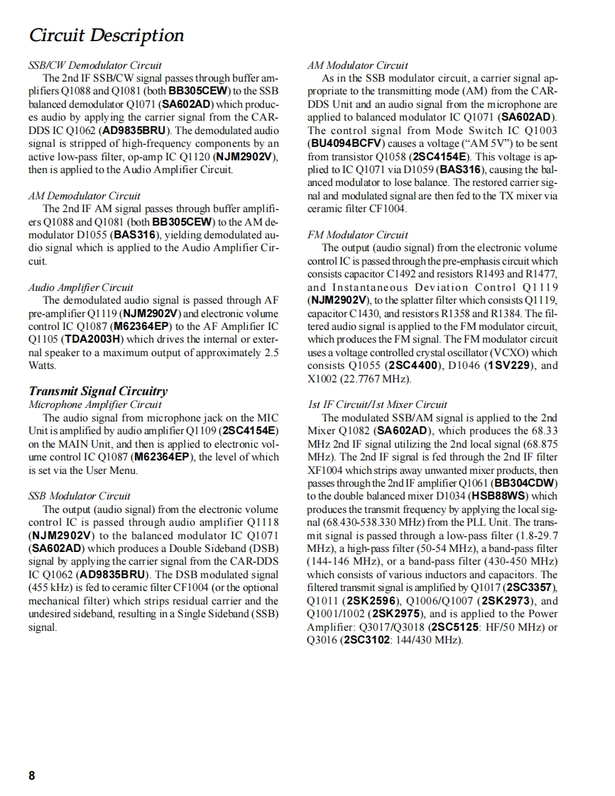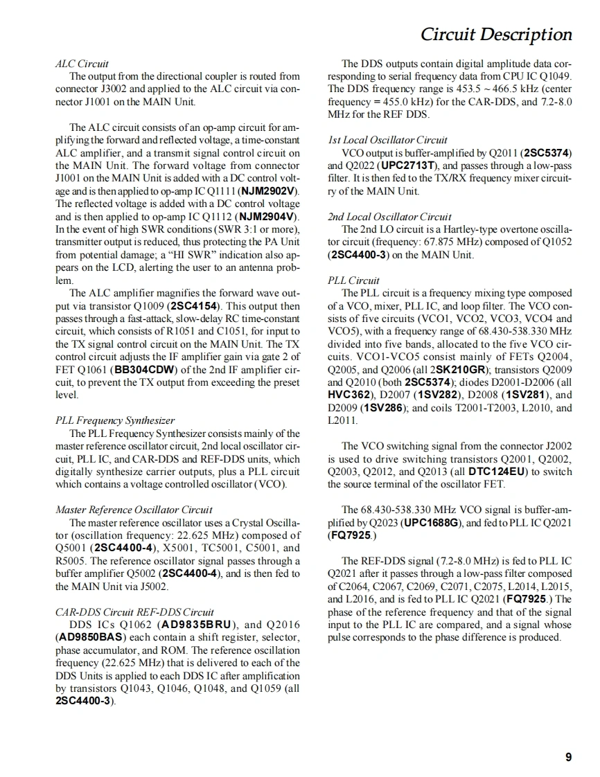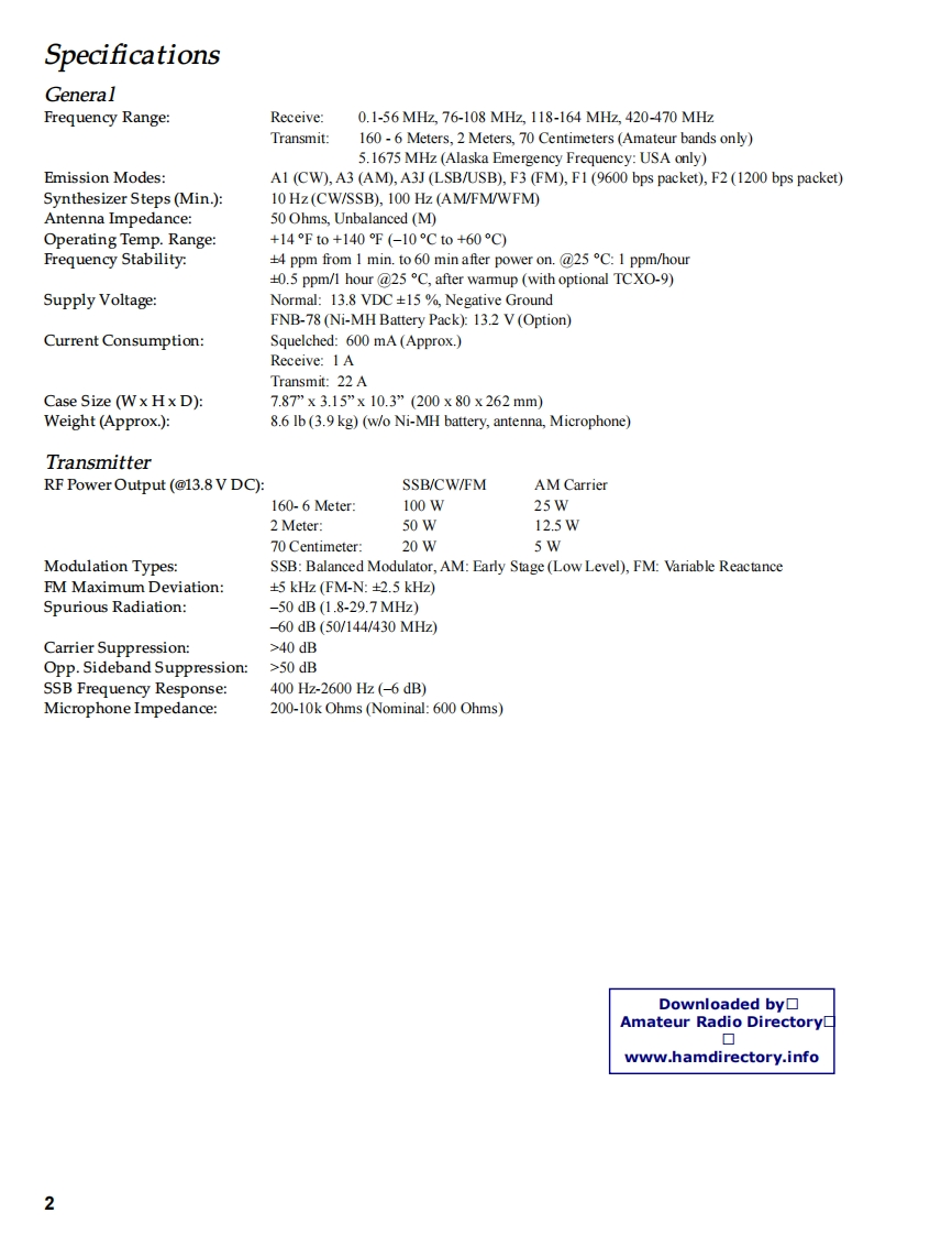 YAESUVERTEX STANDARD CO.,LTD.4-8-8 Nakameguo,Meguro-Ku,Tokyo 153-8644,JapanHF/VHF/UHFVERTEX STANDARDUS Headquarters10900 Walker Street,Cypress,CA 90630,U.SA.ALL MODE TransceiverInternational Division8350 N.W.52nd Terrace,Suile 201,Miami,FL 33166,U.S.AYAESU EUROPE B.V.FT-897P.O.Box 75525,1118 ZN Schiphol,The NetherlandsYAESU UK LTD.Unit 12,Sun Valley Business Park,Winnal CloseTechnical SupplementWinchester,Hampshire,S023 OLB,U.K.VERTEX STANDARD HK LTD.Unit 5,20/F.,Seaview Centre,139-141 Hoi Bun Road,Kwun Tong.Kowloon,Hong Kong@2002 VERTEX STANDARD CO.,LTD.Printed in Japan..175.01Downloaded by▣Amateur Radio Directory▣www.hamdirectory.infoIntroductionThis manual provides technical information necessary for servicing the FT-897 HF/VHF/UHF ALL MODE Trans-ceiver.Servicing this equipment requires expertise in handling surface-mount chip components.Attempts by non-qualifiedpersons to service this equipment may result in permanent damage not covered by the warranty,and may be illegal insome countries.Two PCB layout diagrams are provided for each double-sided circuit board in the Transceiver.Each side of is referredto by the type of the majority of components installed on that side ("leaded"or "chip-only").In most cases one side hasonly chip components,and the other has either a mixture of both chip and leaded components(trimmers,coils,electrolyt-ic capacitors,ICs,etc.),or leaded components only.While we believe the technical information in this manual to be correct,VERTEX STANDARD assumes no liabilityfor damage that may occur as a result of typographical or other errors that may be present.Your cooperation in pointingout any inconsistencies in the technical information would be appreciated.ContentsSpecifications.…2Board Unit(Schematics,Layouts Parts)Exploded View Miscellaneous Parts......4MAIN Unit.21BlockCircuit DescriptionPANEL Unit....…73MIC Unit ........81VR Unit.......82BATT-CONN Unit.83REF Unit.........84