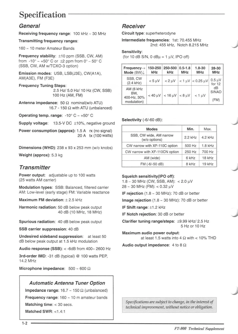 FT-900Technical SupplementYAESU MUSEN CO.,LTD.C.P.O.Box 1500,TOKYO,JAPANYAESU U.S.A.17210 Edwards Rd.,Cerritos,California 90703U.S.A.YAESU EUROPE B.V.Snipweg 3.1118DN SchipholThe NetherlandsYAESU UK LTD.Unit 2,Maple Grove Business CentreLawrence Rd.,Hounslow,Middlesex TW4 6DR,UK