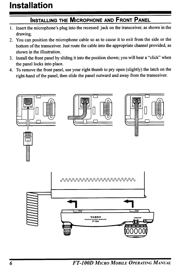 YAESUFT-100DOPERATING MANUALMICRO MOBILEYAESU MUSEN CO.,LTD.4-8-8 Nakameguro,Meguro-Ku,Tokyo 153-8644,JapanYAESU U.S.A.17210 Edwards Rd.,Cerritos,CA 90703,U.S.A.YAESU EUROPE B.V.P.O.Box 75525 1118 ZN,Schiphol,The NetherlandsYAESU UK LTD.Unit 12,Sun Valley Business Park,Winnall CloseWinchester,Hampshire,SO23.0LB,U.K.YAESU GERMANY GmbHAm Kronberger Hang 2,D-65824 Schwalbach,GermanyYAESU HK LTD.11th Floor Tsim Sha Tsui Centre,66 Mody Rd.,Tsim Sha Tsui East,Kowloon,Hong Kong