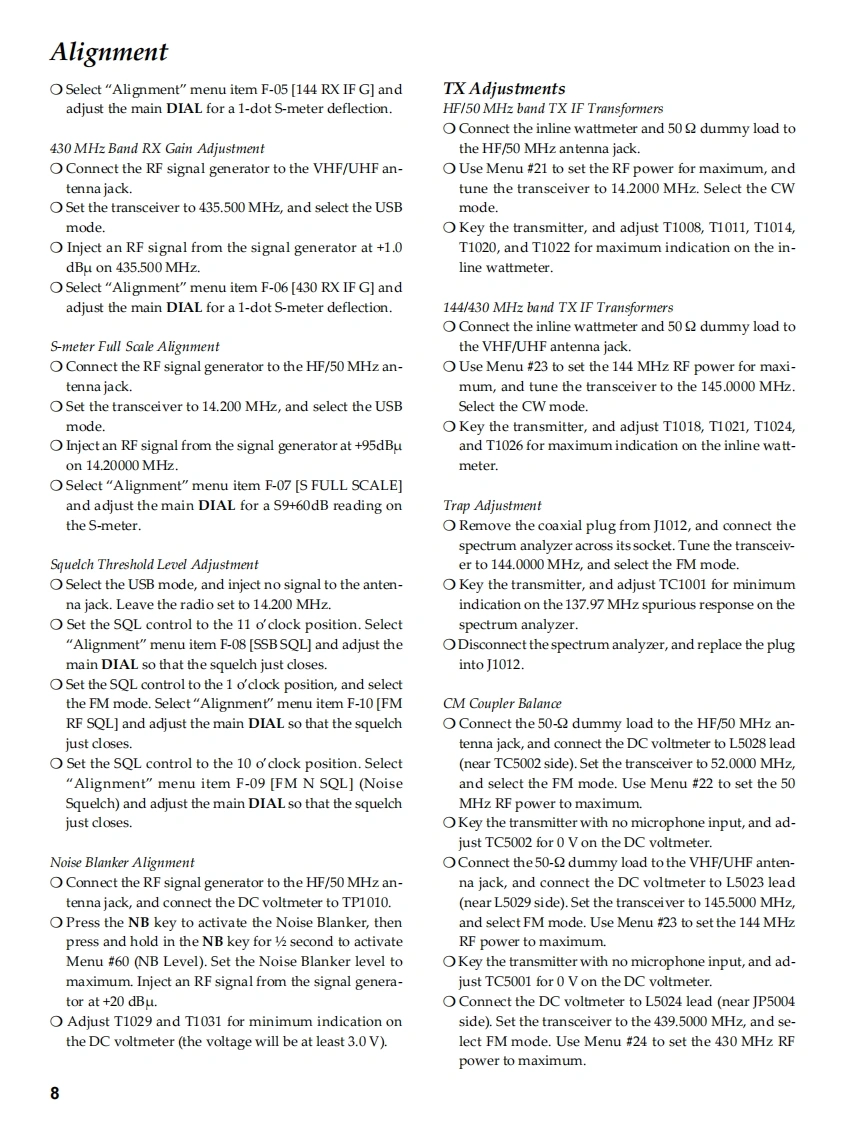 HF V/UHF BandVERTEX STANDARD CO.,LTD.4-8-8 Nakameguro,Meguro-Ku,Tokyo 153-8644,JapanAll Mode Mobile TransceiverVERTEX STANDARD100 Waker Street,Cypress,CA9063.U.S.AFT-100/-100DYAESU EUROPE B.V.P.O.Box 75525,1118 ZN Schiphol,The NetherlandsYAESU UK LTD.Technical SupplementUnit 12,Sun Valley Business Park,Winnall CloseWinchester,Hampshire,S023 OLB,U.K.VERTEX STANDARD HK LTD.Unit 5.20/F.,Seavew Centre,139-141 Hoi Bun Road,2003 VERTEX STANDARD CO.,LTD.E089890AKwun Tong.Kowloon,Hong KongIntroductionThis manual provides technical information necessaryfor servicing the Yaesu FT-100/-100D HF V/UHF-BandTransceiver.It does not include information on installa-tion and operation,which are described in the FT-100/-100D Operating Manual provided with the transceiver,or on accessories which are described in their manuals.The FT-100/-100D is carefully designed to allow theknowledgeable operator to make nearly all adjustmentsrequired for various station conditions,modes and oper-ator preferences simply from the controls on the panels,without opening the case of the transceiver.The FT-100/-nents(trimmers,coils,electrolytic capacitors,packaged100D Operating Manual describes these adjustments,plusICs,etc.),or lead components only.certain internal settings.While we believe the technical information in this man-Servicing this equipment requires expertise in handlingual is correct,VERTEX STANDARD assumes no liabilitysurface mount chip components.Attempts by unqualifiedfor damage that may occur as a result of typographical orpersons to service this equipment may result in perma-other errors that may be present.Your cooperation innent damage not covered by warranty.For the major cir-pointing out any inconsistencies in the technical informa-cuit boards,each side of the board is identified by the typetion would be appreciated.VERTEX STANDARD reservesof the majority of components installed on that side.Inthe right to make changes in this transceiver and the align-most cases one side has only chip components,and thement procedures,in the interest of technological improve-other has either a mixture of both chip and lead compo-ment,without notification of owners.ContentsSpecification.........…2LOCAL Unit….63Exploded View Miscellaneous Parts.....3REF Unit5PA Unit.4t444444#t4#4t4444,77LPE Unit.Block Diagram..7.89DISPLAY Unit.99Interconnection Diagram.............…18CNTL Unit.........107Board Unit(Schematics,Layouts Parts)CONNECT-1 Unit.117MAIN Unit..19VR Unit.1186m-FILTER Unit........…49CONNECT-2 Unit.119BP℉Unit510pti0n.120HPF Unit.........55TCXO-8120AUDIO-FILTER Unit........….59FTS-27121