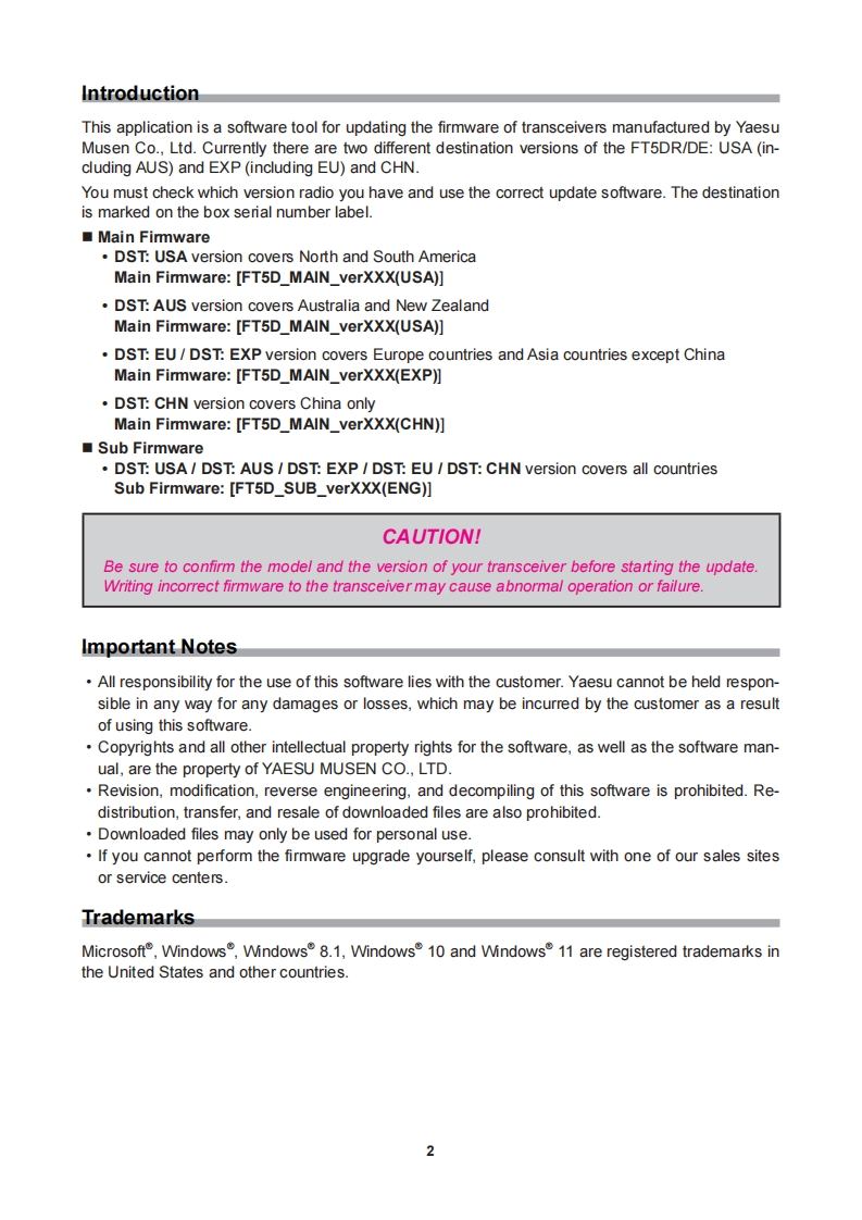 FT5DR_DE_MAIN_SUB_Firmware_Ver_Up_使用说明书手册_ENG_2409-E找手册网23天前发布关注私信4.67MB24页048FT5DR_DE_MAIN_SUB_Firmware_Ver_Up_使用说明书手册_ENG_2409-E此内容为付费资源,请付费后查看¥19¥21黄金会员免费钻石会员免费登录购买付费资源 第1页 / 共24页 第2页 / 共24页 第3页 / 共24页 第4页 / 共24页 第5页 / 共24页 第6页 / 共24页 第7页 / 共24页 第8页 / 共24页 第9页 / 共24页 第10页 / 共24页 试读已结束,还剩14页,您可下载完整版后进行离线阅读 THE END八重洲 文本预览 YAESUThe radioFT5DR/DEMain/Sub FirmwareUpdate Instruction ManualYAESU MUSEN CO.,LTD. 查看更多 收起部分 喜欢就支持一下吧收藏
