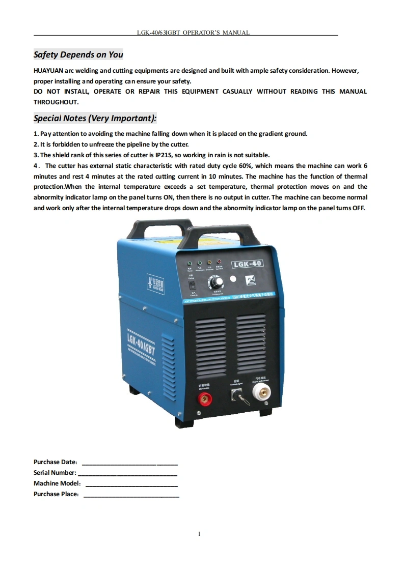 华远焊机LGK-4063IGBT操作与维修手册找手册网22小时前发布关注私信0.76MB20页027华远焊机LGK-4063IGBT操作与维修手册此内容为付费资源,请付费后查看¥19¥21黄金会员免费钻石会员免费立即购买您当前未登录!建议登陆后购买,可保存购买订单付费资源 第1页 / 共20页 第2页 / 共20页 第3页 / 共20页 第4页 / 共20页 第5页 / 共20页 第6页 / 共20页 第7页 / 共20页 第8页 / 共20页 第9页 / 共20页 第10页 / 共20页 试读已结束,还剩10页,您可下载完整版后进行离线阅读 THE END华远 文本预览 R华远焊机HUA YUAN WELDERLGK-40/63IGBTIGBT INVETER AIR PLASMA CUTTINGMACHINEOPERATOR'S MANUAL(PLEASE READ IT CAREFULLY BEFORE OPERATION)CHENGDU HUAYUAN ELECTRIC EQUIPMENT CO.,LTD. 查看更多 收起部分 喜欢就支持一下吧收藏