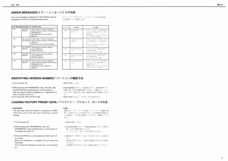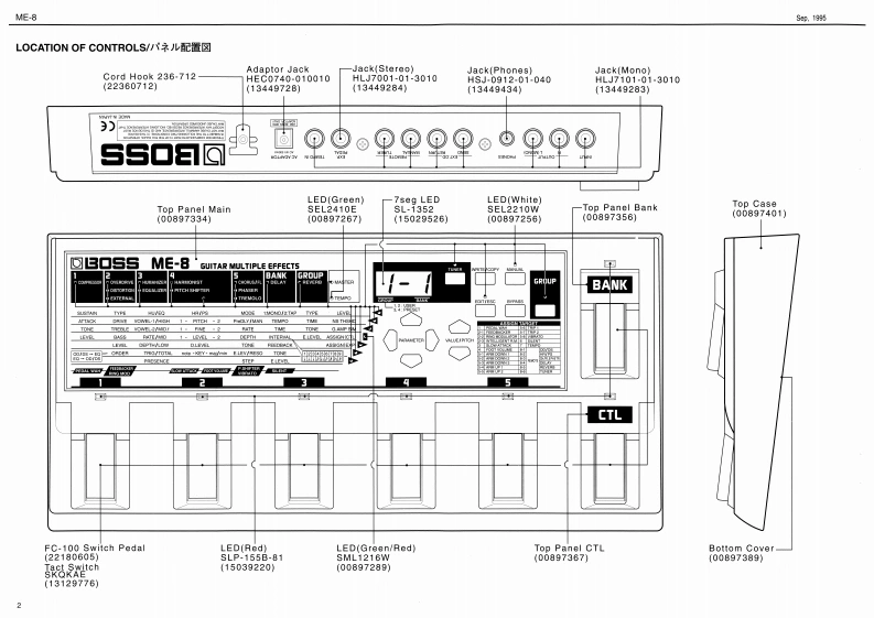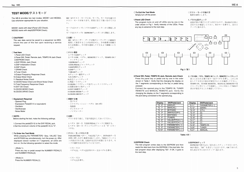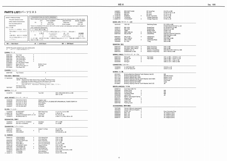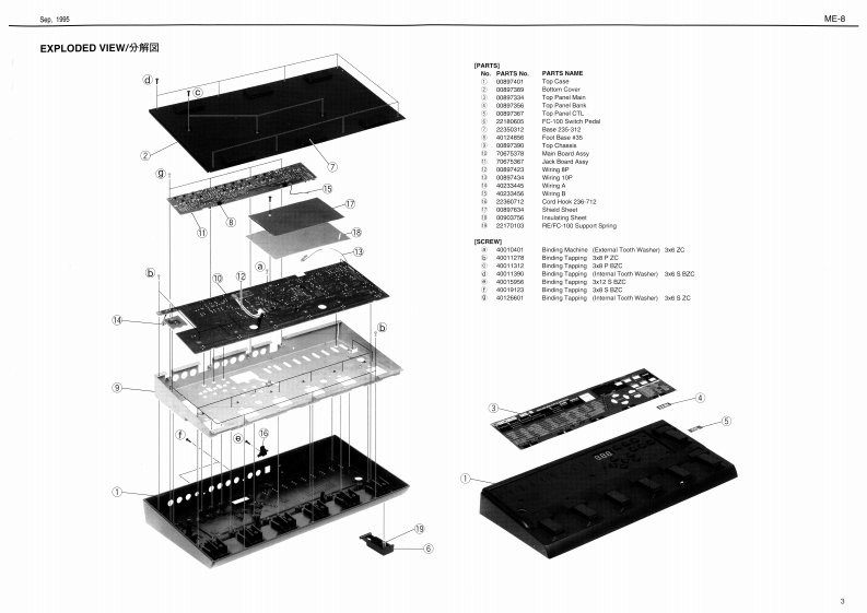010365ME-8迈B▣SSME-8SPECIFICATIONS/仕楼SERVICE NOTES#ATAn■LAE EFPECTEGUITAR MULTIPLEFirst EditionEFFECTSPw-htarusOwe's hoTABLE OF CONTENTS目次PageBLOCK DIAG月AMaa41ss11n1n111n11ブ口y7区t114111111111111LOCATION OF C8 NTROLS·EXPLO0 ED VIEW…………………-…--·分顶……………………3..................-.....-.-.TEST0DE111aat11111n11n:于入水无=a11n11111nn11111:58ERR0 R MESSAGE+4·IDET1 FYING VER5ONNU胆ER-·-梦3才/《-办话方法------…9RESTORING THE FACTORY PRE3ETS··7学夕卜明一,了月包7小仍般定方法…0JACK BOARD ASSY.......................JACK B0ARD A58Y....................10.11ASSY..........................MAIN BOARD ASSY....................12.1310111219BLOCK DIAGRAM/ブ口Y夕☒器EXP.PEDAL101树。1月LRoland17059610Primod in Japan IAFAOI (CR 1