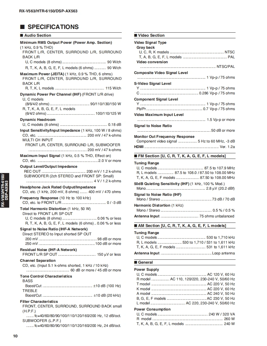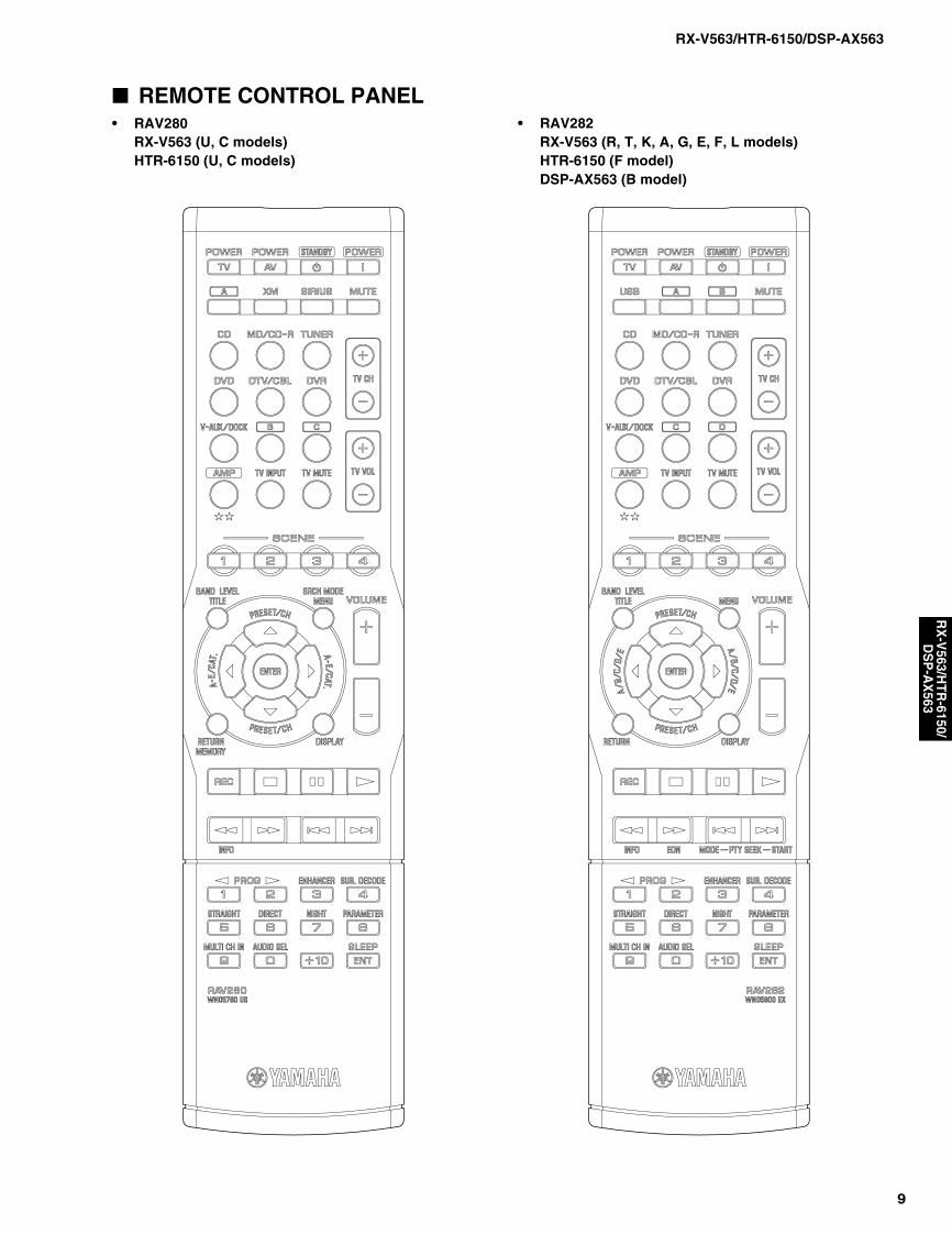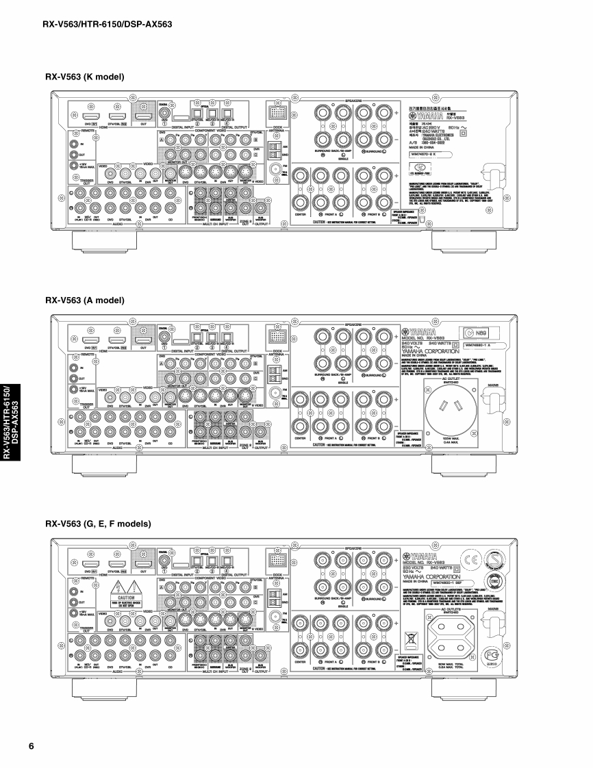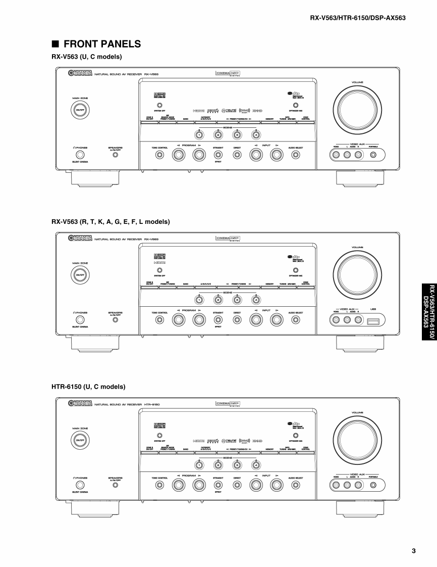 AV RECEIVER/AV AMPLIFIERRX-V563/HTR-6150/DSP-AX563SERVICE MANUALIMPORTANT NOTICEThis manual has been provided for the use of ahord YAMAHA Retailers ad their service personnelIt has been assumed that basic service procedures inherent to the industry,and more specifically YAMAHA Products,are alreadyknown and understood by the users,and have therefore not been restated.WARNING:Failureo follow appropriate service and safety procedures when servicing this product may result in personalinjury,destruction of expensive components,and failure of the product to perform as specified.For these reasons.we advise all YAMAHA product owners that any service required should be performed by authorizedYAMAHA Retailer or the appointed service representative.IMPORTANT:The presentation or sale of this manual toany individualor fim does not constitute authorization,certification orrecognition of any applicable technical capabilities,or establish a principle-agent relationship of any form.The data provided is believed to be accurate and applicable to the unit(s)indicated on the cover.The research,engineering.andservice departments of YAMAHA are continually striving to improve YAMAHA products.Modifications are,therefore,inev itableand specifications are subject to change without notice or obligation to retrofit.Should any discrepancy appear to ex ist,pleasecontact the distributor's Service Division.WARNING:Static discharges can destroy expensive components.Discharge any static electricity your body may haveaccumulated by grounding yourself to the ground buss in the unit (heavy gauge black wires connect to this buss).IMPORTANT:Turn the unit OFF during disassembly and part replacement.Recheck all work before you apply power to the unit.■CONTENTSTO SERVICE PERSONNELu3DISPLAY DATA45FRONT PANELS......…3-4IC DATA.....46-59REAR PANELS.5-8BLOCK DIAGRAMSmm.mm.m.61-65REMOTE CONTROL PANEL9PRINTED CIRCUIT BOARDS...66-79SPECIFICATIONS.....10-12PIN CONNECTION DIAGRAMS80-81INTERNAL VIEW..13SCHEMATIC DIAGRAMS83-96DISASSEMBLY PROCEDURES.....14-16REPLACEMENT PARTS LIST....97-109UPDATING FIRMWARE ......17-21REMOTE CONTROL......110-112SELF DIAGNOSIS FUNCTION (DIAG)............22-44Advanced setup .........113二)竹一上入了二F儿体、工3マ一夕隔定)再生纸卷使用T儿'米寸。This Service Manual uses recycled paper米YAMAHA101086This manual is copyighted by YAMAHA and may notbe copiedorredistributed either in pintor electroncally without permission.YAMAHA CORPORATIONP.O.Box 1,Hamamatsu,Japan08.03