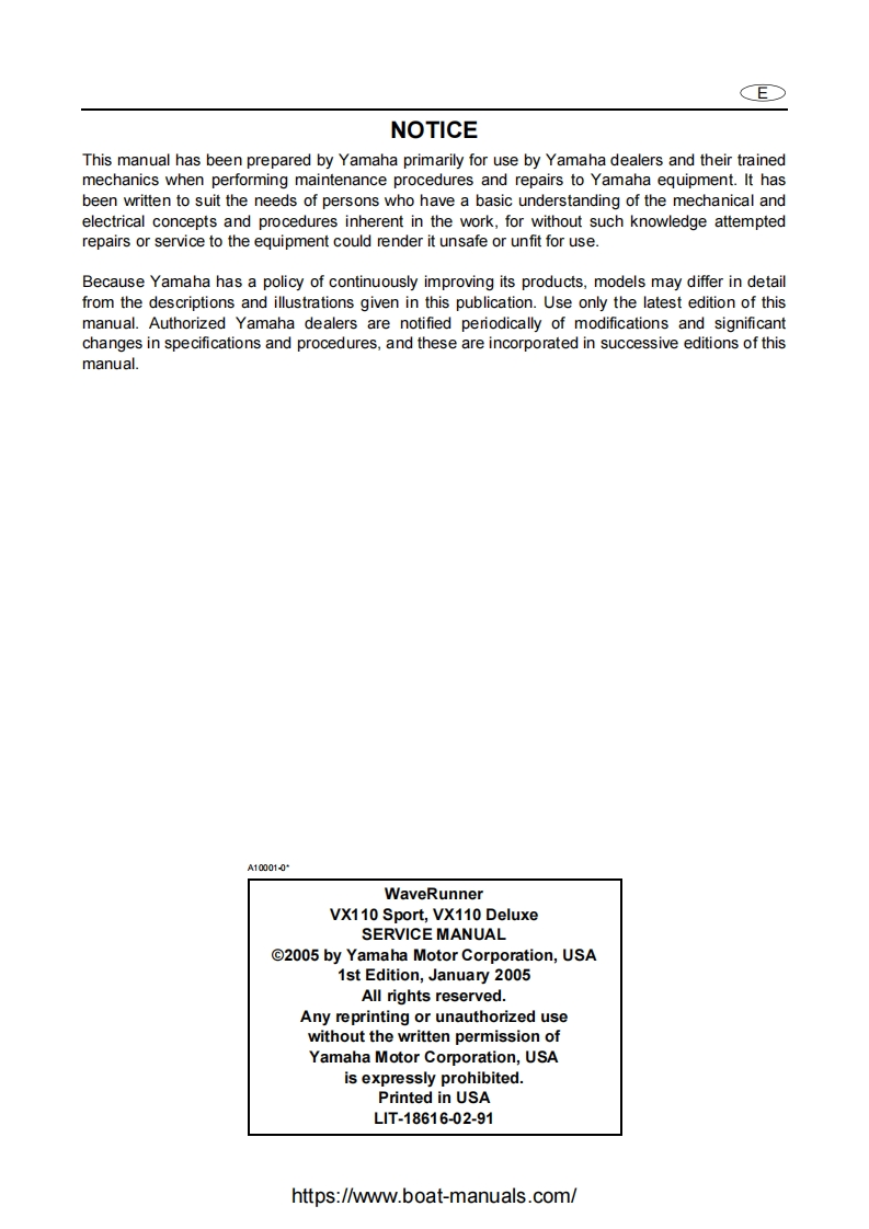 雅马哈Yamaha-VX110-Service-Manual维修手册找手册网23天前发布关注私信11.48MB347页033雅马哈Yamaha-VX110-Service-Manual维修手册此内容为付费资源,请付费后查看¥29¥31黄金会员免费钻石会员免费登录购买付费资源 第1页 / 共347页 第2页 / 共347页 第3页 / 共347页 第4页 / 共347页 第5页 / 共347页 第6页 / 共347页 第7页 / 共347页 第8页 / 共347页 第9页 / 共347页 第10页 / 共347页 试读已结束,还剩337页,您可下载完整版后进行离线阅读 THE END雅马哈机车 文本预览 米YAMAHAWaveRunnerVX110 SportVX110 DeluxeSERVICE MANUALLIT-18616-02-91F1K-28197.1H-11https://www.boat-manuals.com/ 查看更多 收起部分 喜欢就支持一下吧收藏