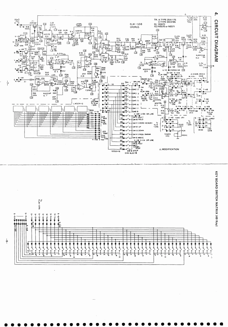 KORGKORG PROGRAMMABLE POL YPHONIC SYNTHESIZERSERVICEMANUALPOLY800CONTENTS1.SPEC1 FICATIONS,,,,,·,,,,,,,·,,··,,·,·,·,,··,,·12.STRUCTURAL DIAGRAM.··..·.·23.BLOCK DIAGRAM.4.CIRCUIT DIAGRAM...............................5.PCBOARD....................................106.CIRCUIT DESCRIPTIONS...........................147.TROUBLESHOOTING TABLE.........................208.CHECK AND ADJUSTMENT PROCEDURE.······,·····,.219.REFERENCE DATA,,,,,,,,,·,,,,······2310。PARTS LIST,,,·,·····,····.....3●●KEIO ELECTRONIC LABORATORY CORPORATIONTOKYO/JAPAN