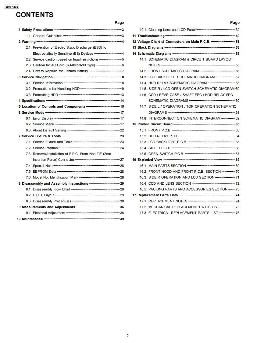 ORDER NO.VM0703038CEService ManualSD Card/Hard Disk Video Camera名LEICASDR-H20EDICOMARLA8②SDR-H20EBSDR-H20EESDR-H20EFSDR-H20EGSDR-H20EPSDR-H20GCSDR-H20GNSDR-H21EEPbFSDR-H21GCSolder Lead freeSDR-H28GKSDR-H29GKVol.1Colours(S)...Silver TypeAWARNINGThis service information is designed for experienced repair technicians only and is not designed for use by the general public.It does not contain warnings or cautions to advise non-technical individuals of potential dangers in attempting to service a productProducts powered by electricity should be serviced or repaired only by experienced professional technicians.Any attempt to serviceor repair the product or products dealt with in this service information by anyone else could result in serious injury or death.2007 Matsushita Electric Industrial Co.,Ltd.AllPanasonicrights reserved.Unauthorized copying anddistribution is a violation of law.