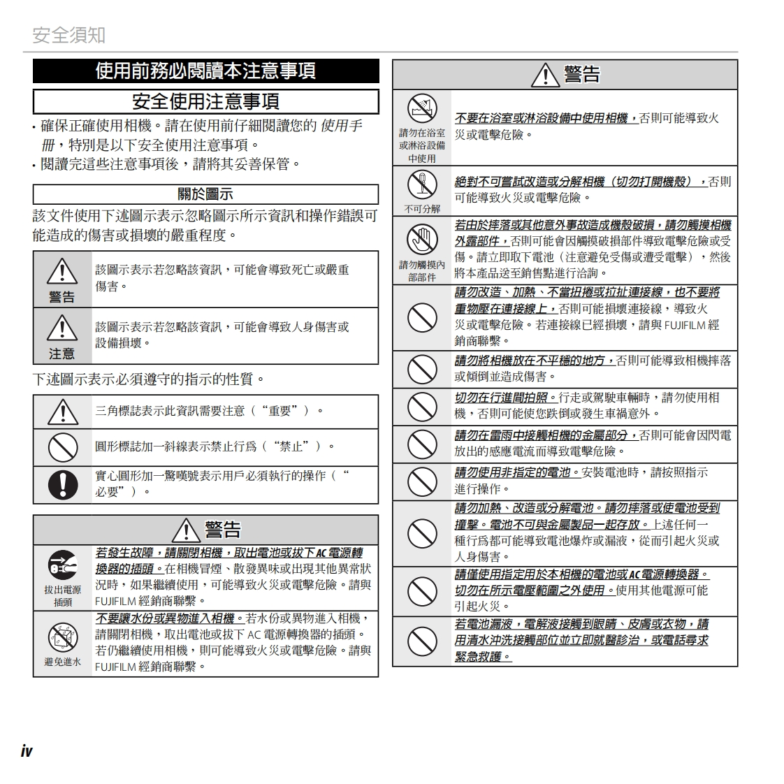 FUJ'FILMBL01727-C00ZHTDIGITAL CAMERA準備FINEPIX F800EXR第一步驟使用手冊基本攝影與瀏覽感謝您選購本產品。本手冊關於攝影的更多資訊將說明如何使用您的FUJIFILM數位相機及隨附的軟體。在關於瀏劉覽的更多資訊使用相機之前,請確定您已智慧型手機和平板装置閱讀並理解了本手冊內容及“安全須知”(目ⅱ)中動畫的警告。有關相關產品的資钒,請參閱我們的網站相機連接http://www.fujifilm.com/products/digital_cameras/index.html選單技術支援故障排除附録Compatible withEXRWindowsH▣nICMOS2PictBridgeVistaWindows7Exif PrintHIGH-DEFINITION MULTIMEDIA INTERFACE
