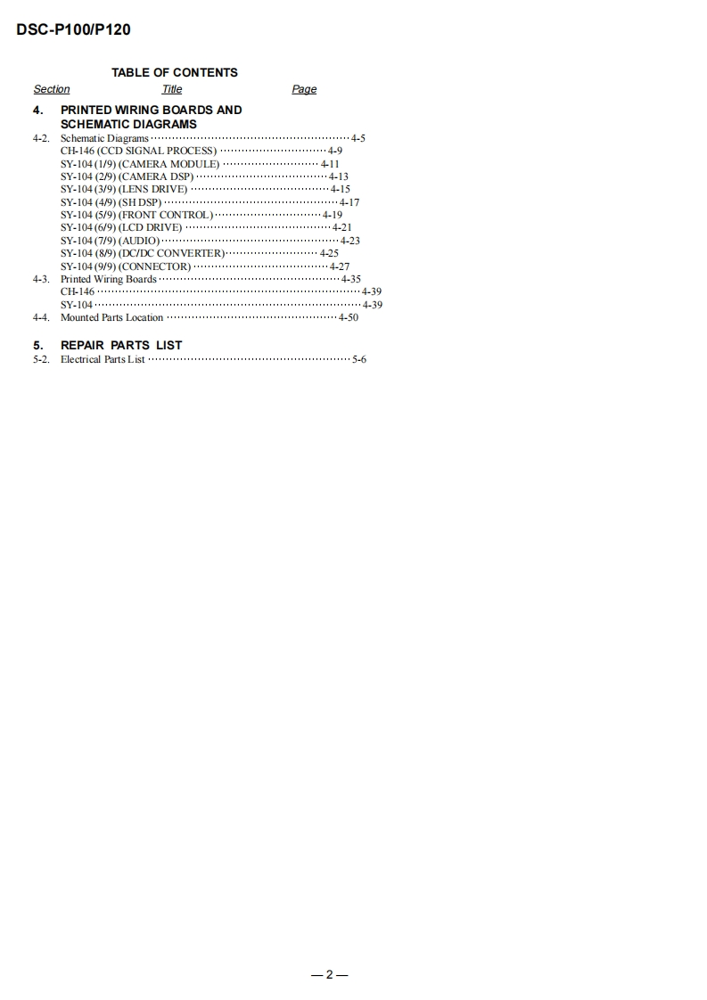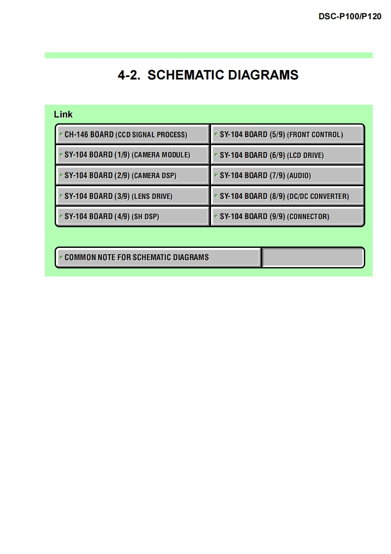 DSC-P100/P120SERVICE MANUALLEVEL 3DSC-P100Ver1.02004.04US ModelRevision HistoryCanadian ModelE ModelHong Kong ModelAustralian ModelChinese ModelHow to useKorea ModelAcrobat ReaderTourist ModelJapanese ModelDSC-P100/P120AEP ModelUK ModelPhoto:DSC-P100/SilverLinkSCHEMATIC DIAGRAMSPRINTED WIRING BOARDSREPAIR PARTS LISTFor ADJUSTMENTS (SECTION 6),refer to SERVICE MANUAL,ADJ(987673451.pdf)For INSTRUCTION MANUAL,refer to SERVICE MANUAL,LEVEL 1(987673441.pdf).This service manual contains information for Japanese model as well.Reference No.search on printed wiring boards is available.The information that is not described in this Service Manual is describedin the LEVEL 2 Service Manual.When repairing,use this manual together with LEVEL 2 Service Manual.Contents of LEVEL 2 Service Manual1.SERVICE NOTE2.DISASSEMBLYOVERALL3.BLOCK DIAGRAMSPOWERCD-511 FLEXIBLE.4.PRINTED WIRING BOARDS ANDST-105 FLEXIBLE,ST-102SCHEMATIC DIAGRAMSMS-207 FLEXIBLE.JK-266 FLEXIBLEEXPLODED VIEWS5.REPAIR PARTS LISTELECTRICAL PARTS LISTDIGITAL STILL CAMERASONY