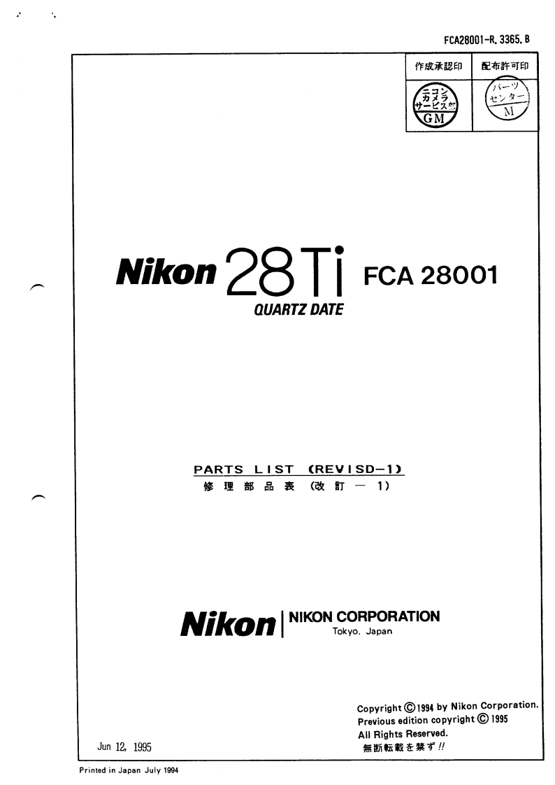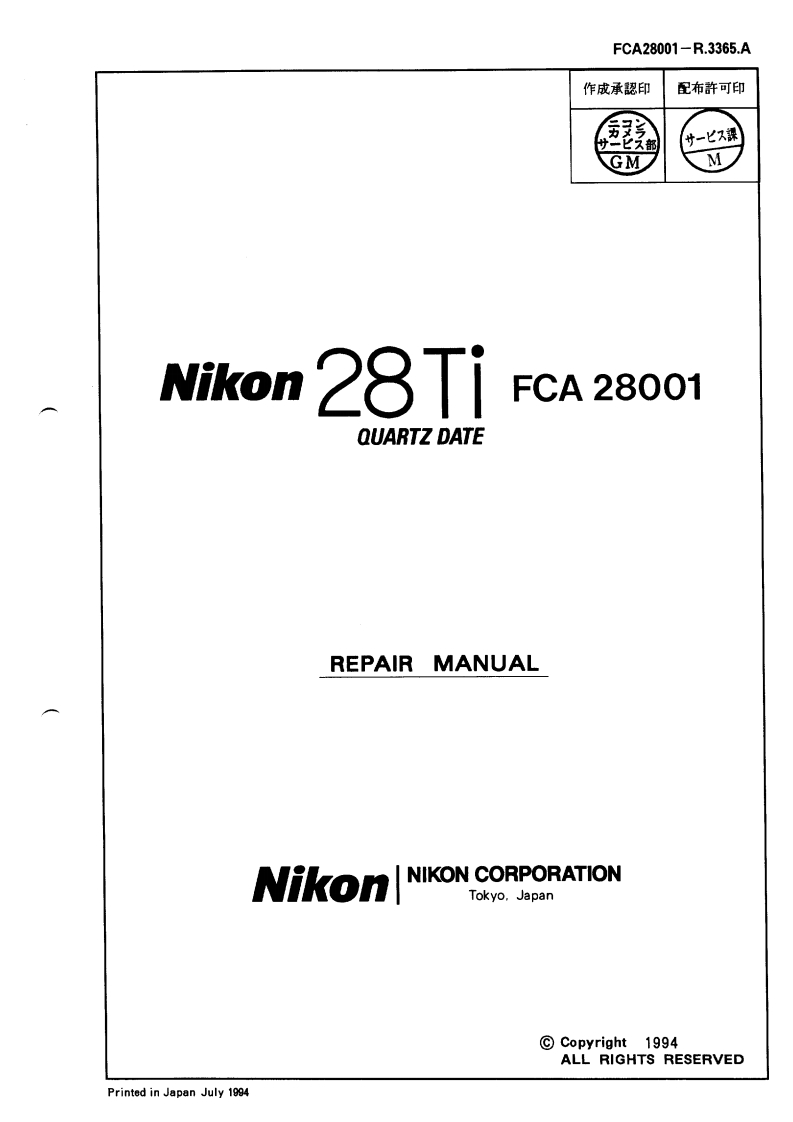 NIKON尼康数码相机28-TI维修手册零部件手册找手册网23小时前发布关注私信2.31MB48页037NIKON尼康数码相机28-TI维修手册零部件手册此内容为付费资源,请付费后查看¥19¥21黄金会员免费钻石会员免费立即购买您当前未登录!建议登陆后购买,可保存购买订单付费资源 第1页 / 共48页 第2页 / 共48页 第3页 / 共48页 第4页 / 共48页 第5页 / 共48页 第6页 / 共48页 第7页 / 共48页 第8页 / 共48页 第9页 / 共48页 第10页 / 共48页 试读已结束,还剩38页,您可下载完整版后进行离线阅读 THE ENDNikon 文本预览 FCA28001-R.3365.ANikon 28TiFCA28001QUARTZ DATEDISASSEMBLING/ASSEMBLING/ADJUSTMENTNikonNIKON CORPORATIONTokyo.Japan 查看更多 收起部分 喜欢就支持一下吧收藏