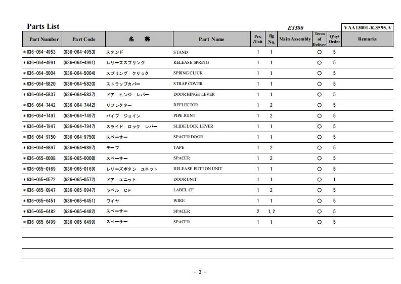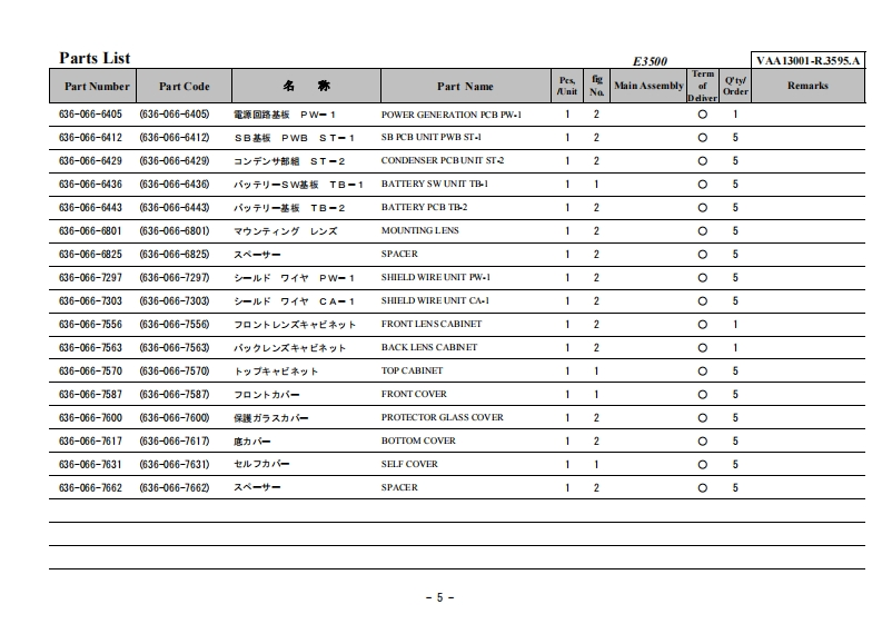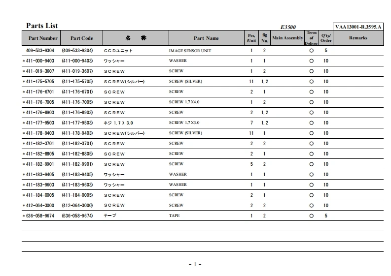 NIKON尼康数码相机3500-Part-List维修手册零部件手册找手册网23小时前发布关注私信0.40MB10页026NIKON尼康数码相机3500-Part-List维修手册零部件手册此内容为付费资源,请付费后查看¥19¥21黄金会员免费钻石会员免费立即购买您当前未登录!建议登陆后购买,可保存购买订单付费资源 第1页 / 共10页 第2页 / 共10页 第3页 / 共10页 第4页 / 共10页 第5页 / 共10页 第6页 / 共10页 第7页 / 共10页 第8页 / 共10页 第9页 / 共10页 第10页 / 共10页 已完成全部阅读,共10页 THE ENDNikon 文本预览 VAA13001-R3595.A作成承認印配布許可印計画課GMMNikonCOOLP X3500VAA13001PARTS LIST修理部品表ONIKON CORPORATIONTokyo,JapanCopyright 2003 by Nikon Corporation.Recycled paperAll Rights Reserved.再生抵态使用LT儿無断耘載左禁式!Printed in Japan Jan.2003 查看更多 收起部分 喜欢就支持一下吧收藏