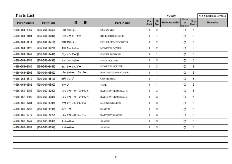 VAA12901-R3594.A作成承認印配布許可印計面課GMMNikonEOOLP X4ΞB▣▣J:VAA12901SV BGVAA12911BK /BGU:VAA12902SV /GREP:VAA12903SV /BGVAA12913BK BGEN:VAA12904 SV BGBody color/Grip colorSV(Si Iver),BK(BIack)/BG(Bule-Gray),GR(Green)PARTS LIST修理部品表ONIKON CORPORATIONTokyo.JapanCopyright 2003 by Nikon Corporation.Recycled paperAll Rights Reserved.再生抵态使用LT儿無断転載左禁寸!Printed in Japan January 2003