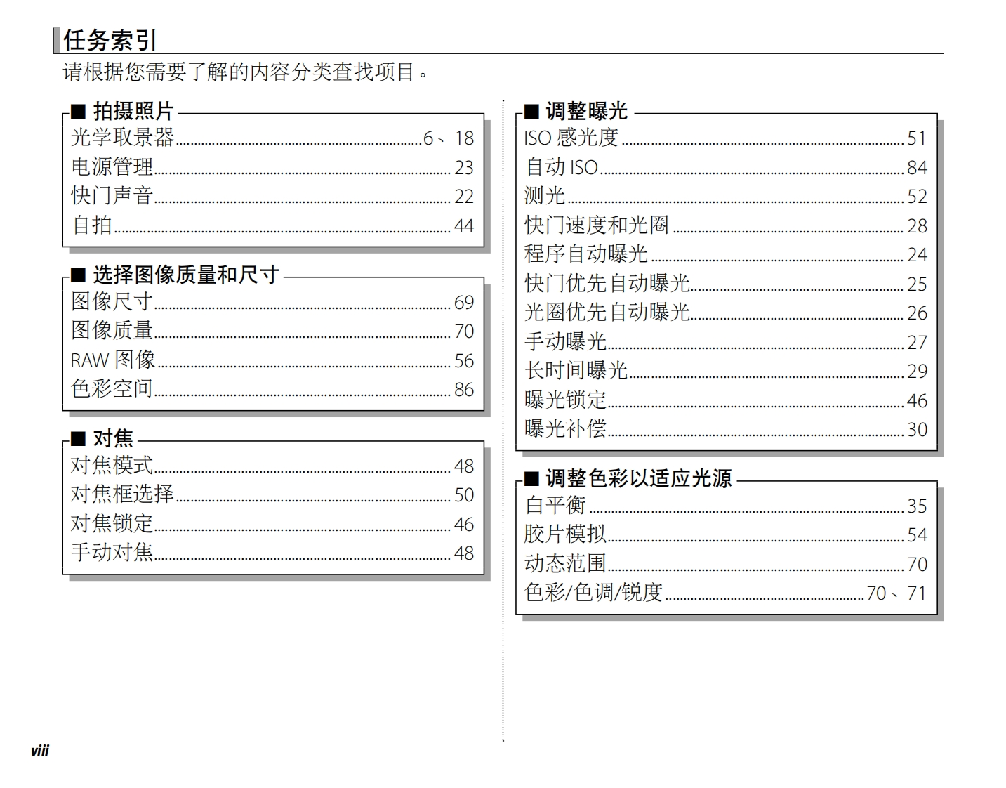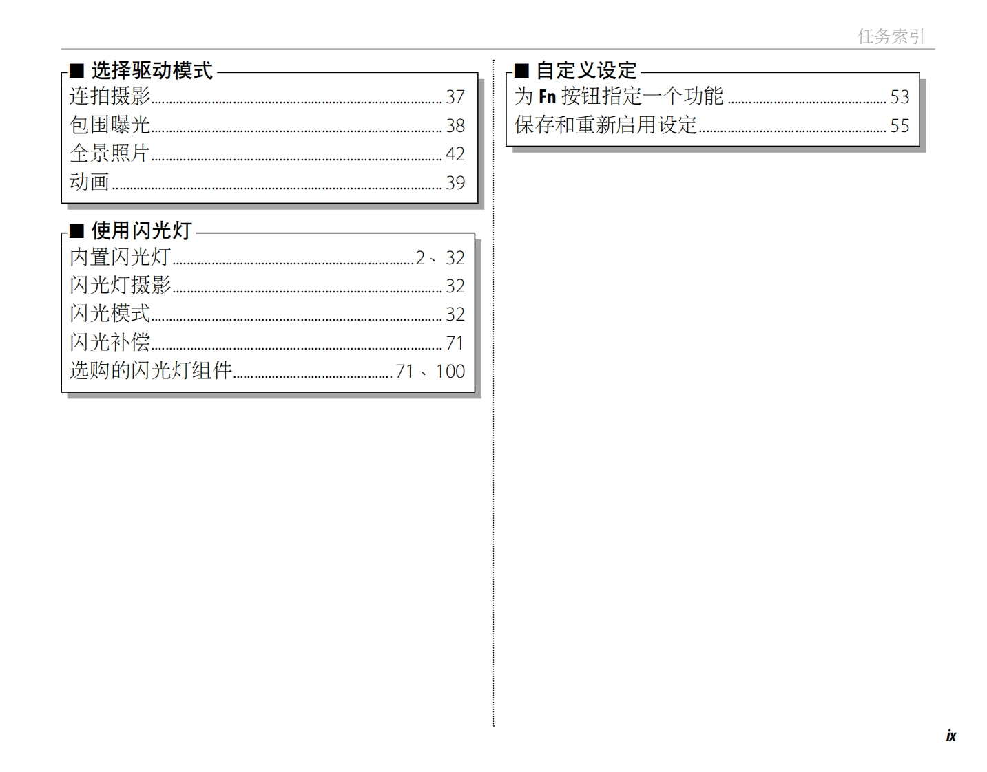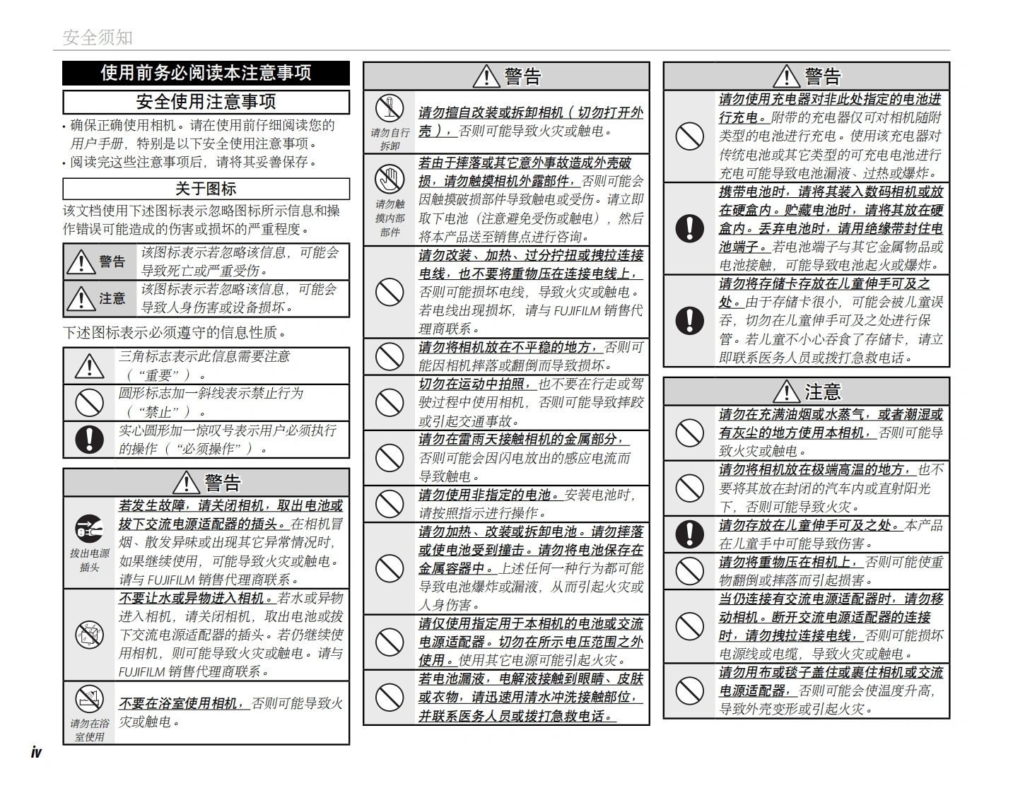 FUJ:FILMBL01285-602ZHS富士数码相机使用之前FINEPIXX100开始步骤用户手册拍摄照片感谢您购买本产品。本手册讲述了如何使用有关拍摄的详细信息FUJIFILM FinePix X100数码相机及安装附带的软件。在使用相机之前,请确定您已阅读并理解了本手册内容。查看照片菜单连接有关相关产品的信息,请访问我们的网站http://www.fujifilm.com.cn技术注释有关X100的详细信息,请访问http://www.finepix-x100.com/故障排除附录Exif Print2HDmPictBridgeWindows*7HIGH-DEFINITION MULTIMEDIA INTERFACE