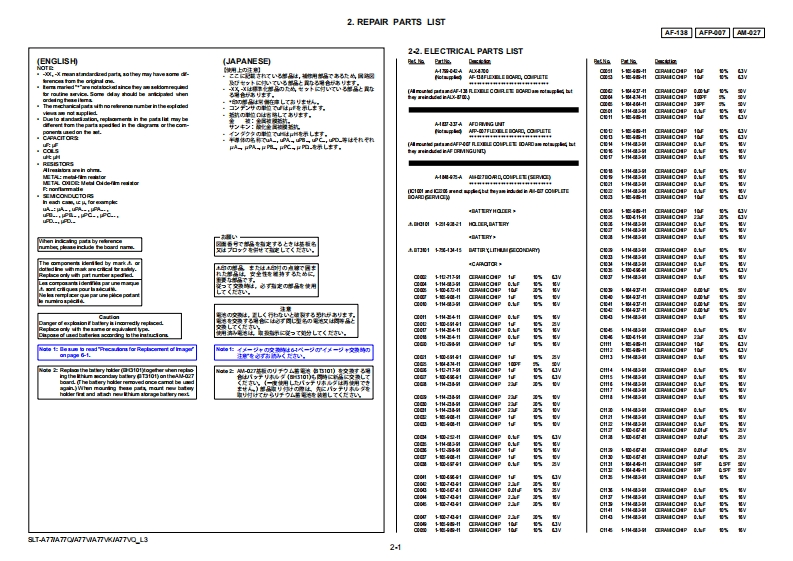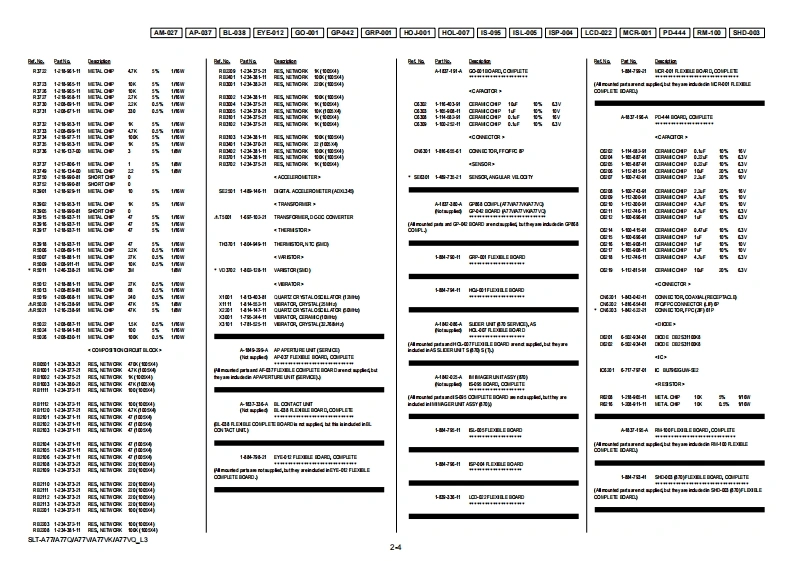 983461211.pdSLT-A77IA77QIA77VIA77VKIA77VORevision HistorySERVICE MANUALLEVEL 3Ver1.02011.09US ModelCanadian ModelAEP ModelSONYUK ModelE ModelAustralian ModelChinese ModelKorea ModelJapanese ModelTourist ModelPha▣7Check the SERVICE NOTE (LEVEL 2)before the service.About the0 service of出moddach long servic manal he rerchungeable Lemkit,whenyou npuirMe出lSevvce Matul ofLets4747VNo appledlemNo spplad km氢47E¥丛155DT155mmX5-56s.A5601147yA77Q96151INTERCHANGEABLE LENS DIGITAL CAMERAnm杰ata年填oSONYSLT-A77A77O/A77WA77VK/A77VO_L3边i-e道n的-的4121Sony Corpomtionblshed句9a可Txae白te Corporaton