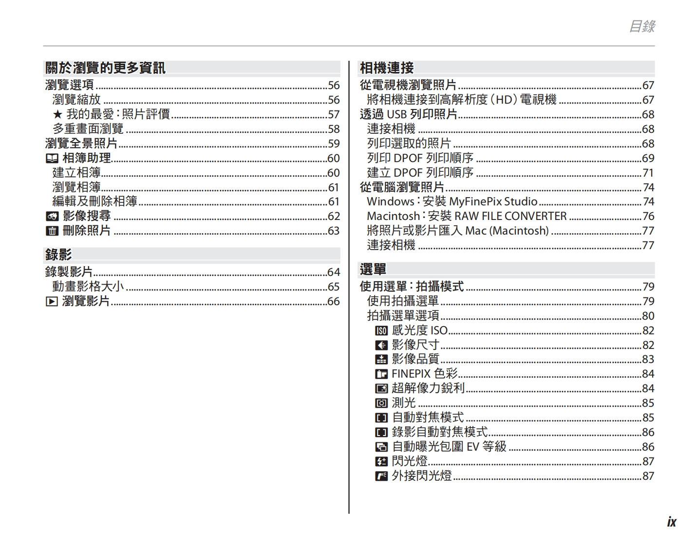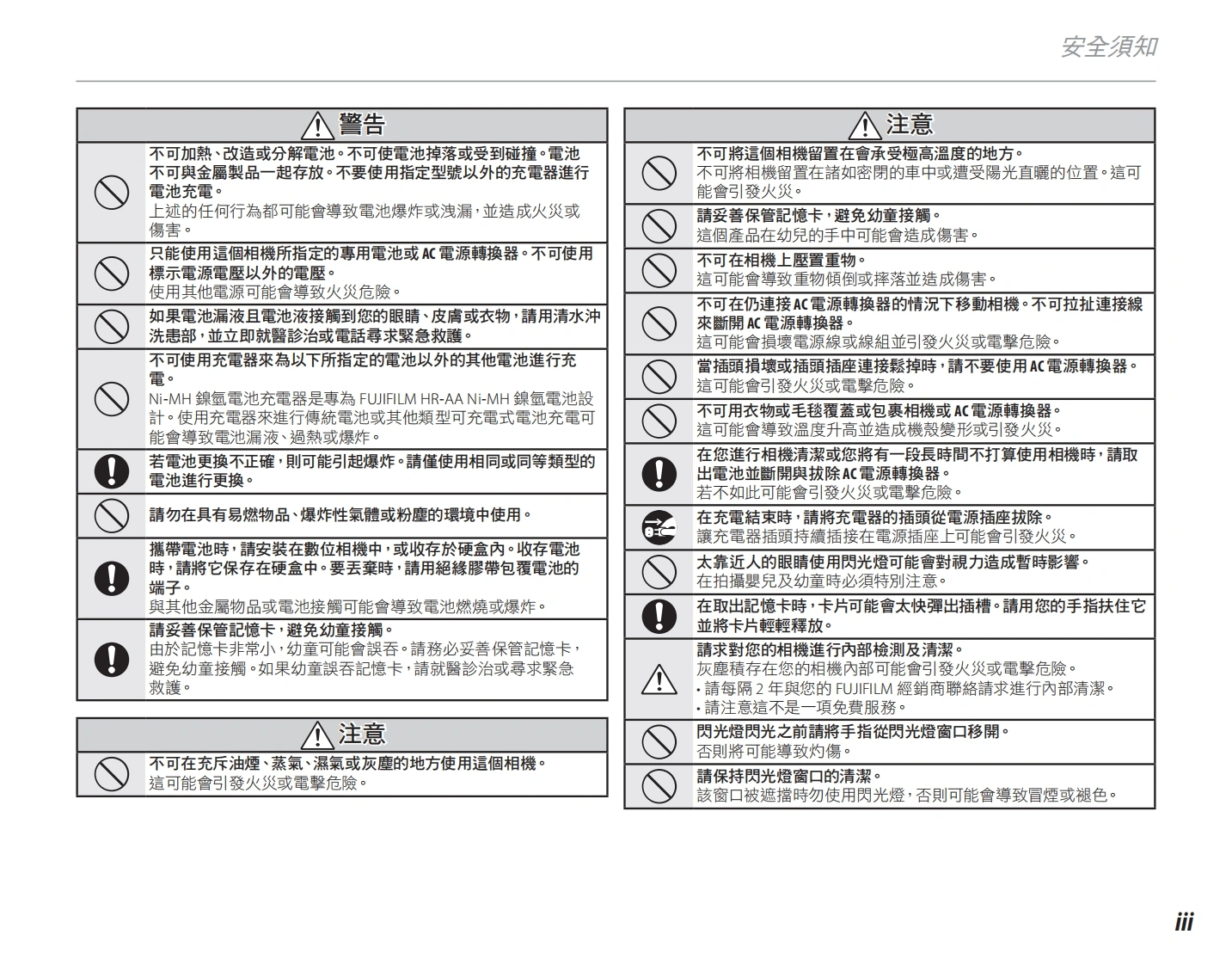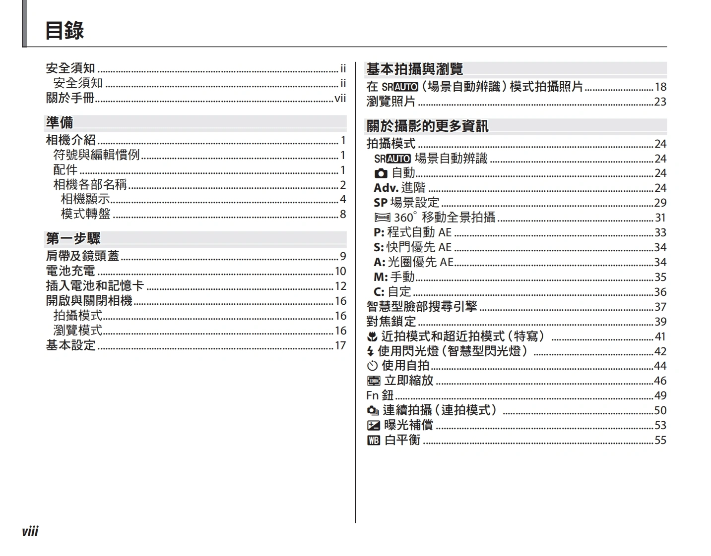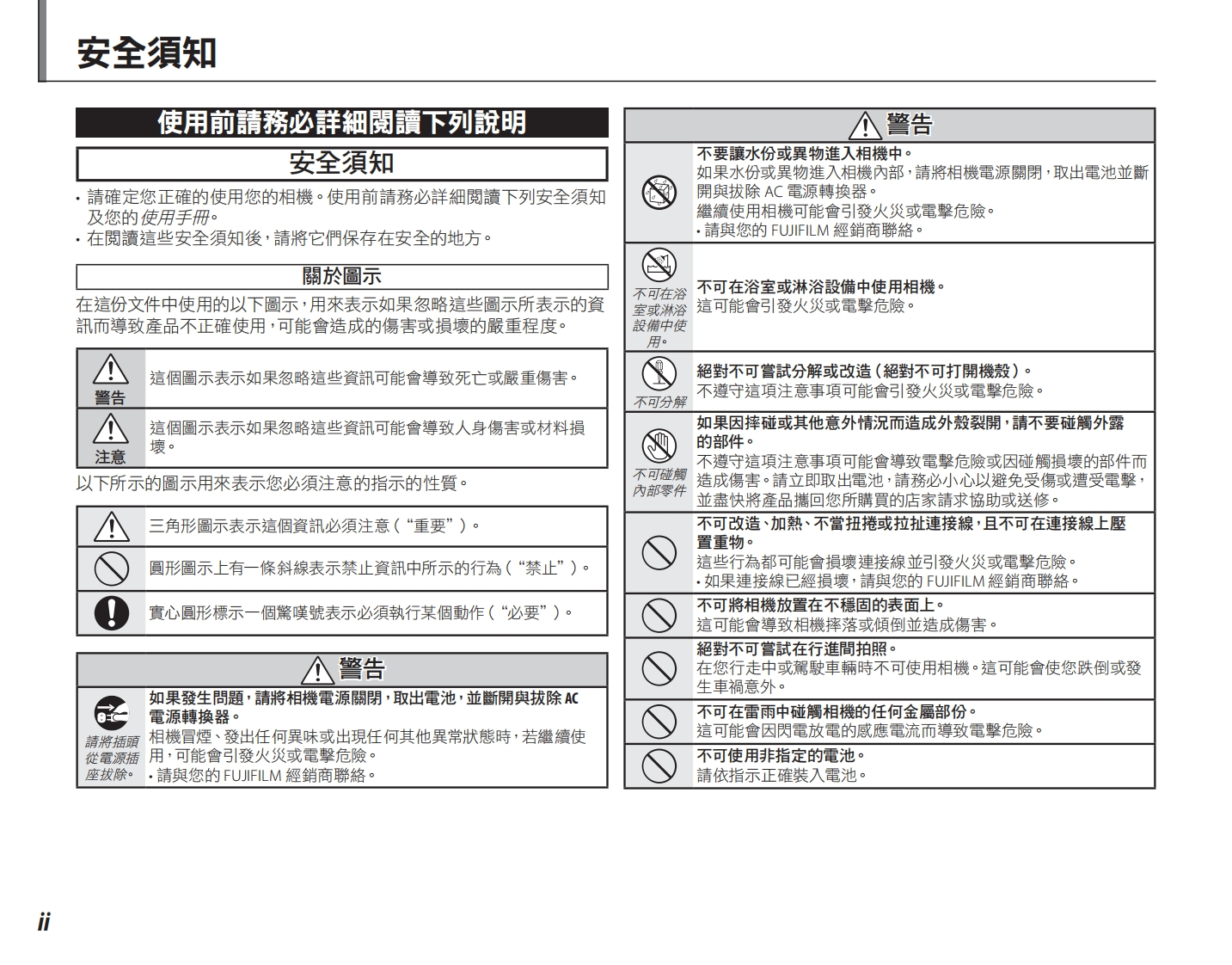 FUJ:FILMBL02911-100ZhtDIGITAL CAMERA準備FINEPIX SL1000系列使用手冊第一步驟感謝您選購本產品·本手冊將説明如何基本拍攝與瀏覽使用您的FUJIFILM數位相機及隨附的軟體。在使用相機之前,請確定您已閱讀並關於攝影的更多資訊理解了本手冊內容及“安全須知”(目)中的警告。關於瀏覽的更多資訊錄影相機連接關於相關產品的資訊,請查閱我們的網站http://www.fujifilm.com/products/digital_cameras/index.html選單技支援故障排邦除Ha▣几附錄Exif PrintPictBridgeHIGH-DEFINITION MULTIMEDIA INTERFACE