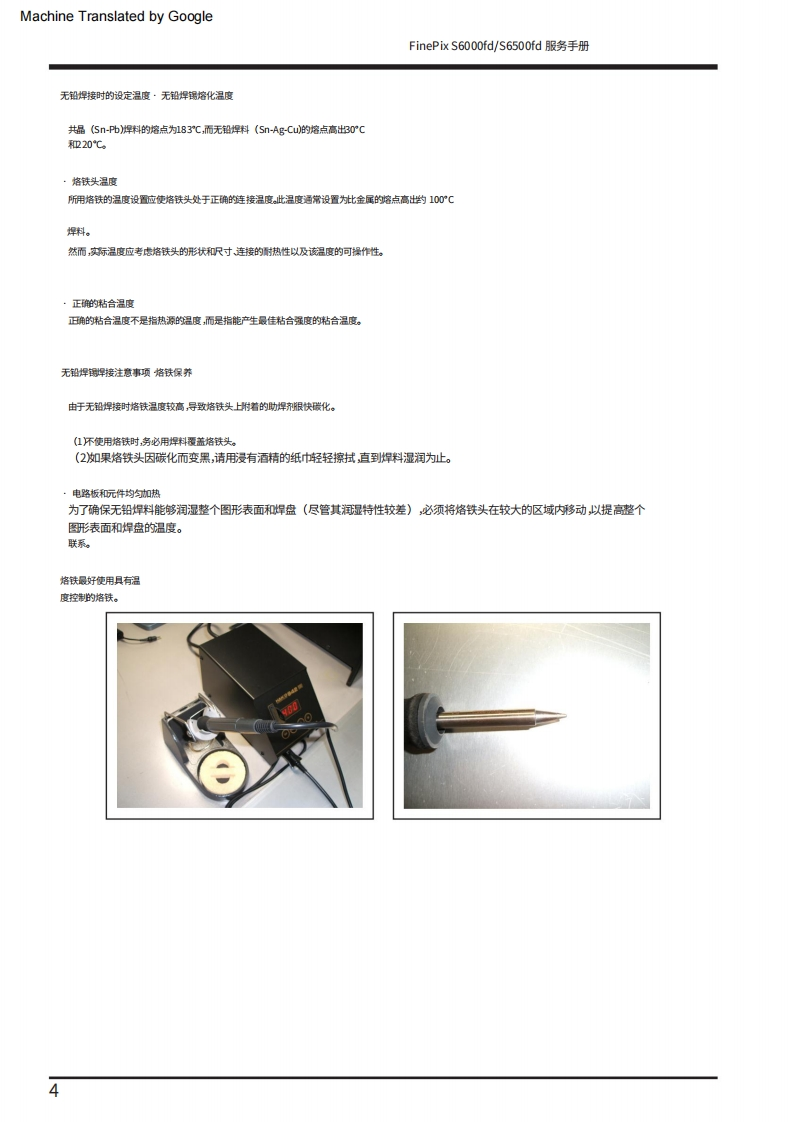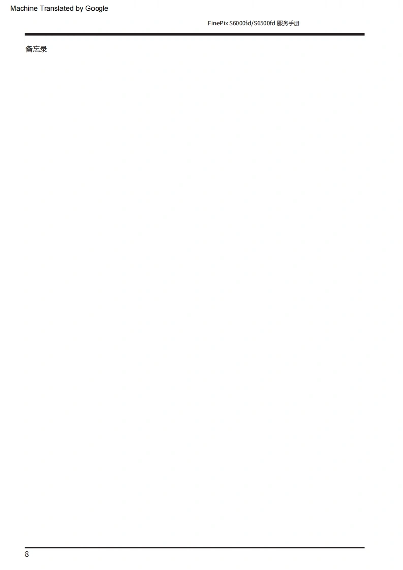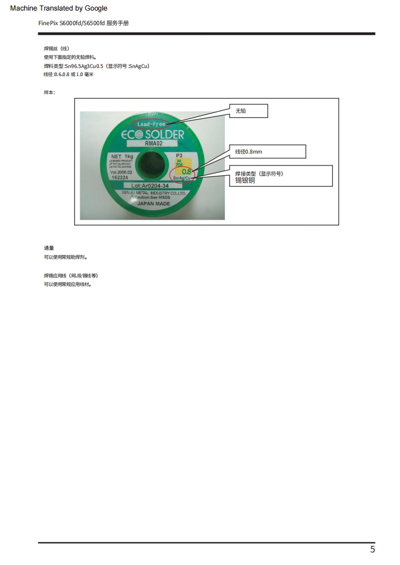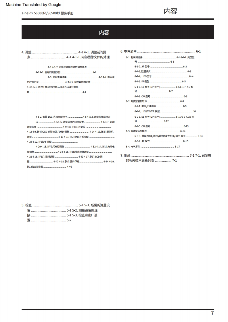 Machine Translated by GoogleFUJIFILM数码相机FinePix S6000fd/西门子S6500fd服务手册美国/欧盟/埃及/爱沙尼亚/澳大利亚/瑞士/日本-型号警告●由于本产品符合邰oHS无铅标准,因此使用设计指定的售后零件和指定的无铅焊料时进行维修。(参见第3页至第5页)警告●标有标记的陪部件“公标翻上图表和零件清单对于安全至关重要。请仅使用示意图上指定的组件进行替换图表和零件清单。如果使用未指定的零件,可能会导致火灾和触电。编号:ZM00647-100富士胶片株式会社2006.09日本印刷