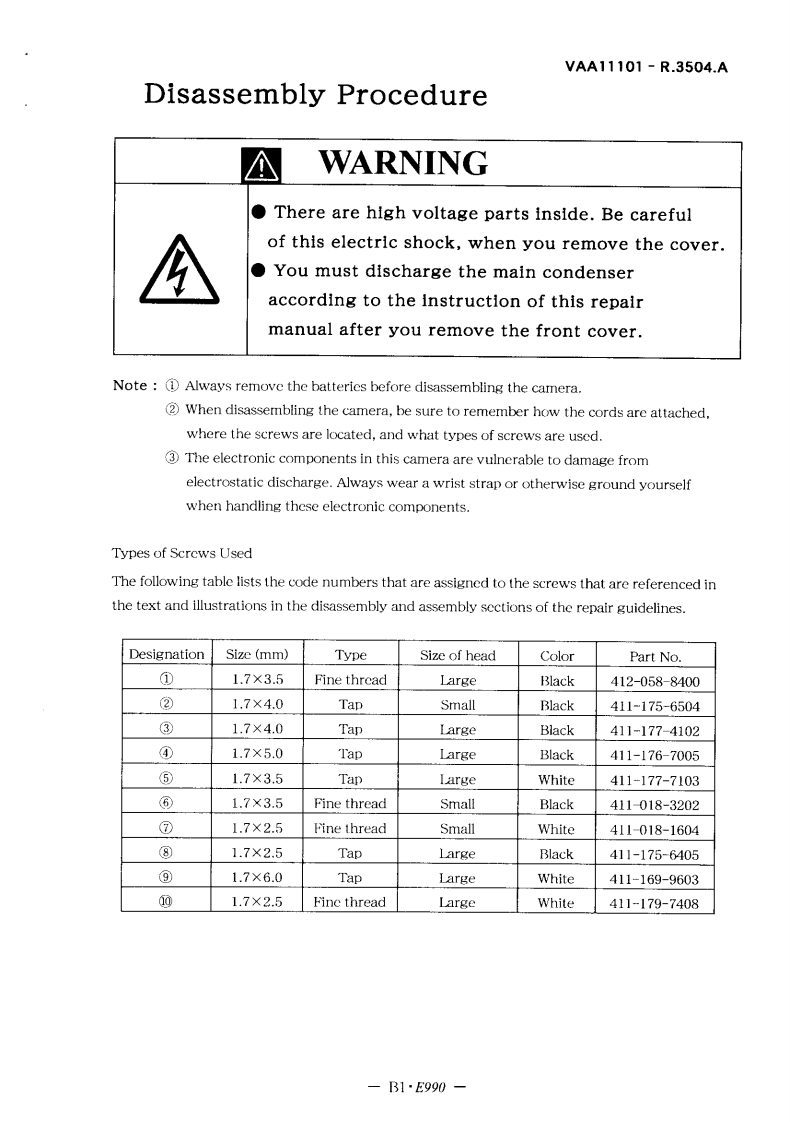 NIKON尼康数码相机990维修手册零部件手册找手册网23小时前发布关注私信5.57MB85页037NIKON尼康数码相机990维修手册零部件手册此内容为付费资源,请付费后查看¥19¥21黄金会员免费钻石会员免费立即购买您当前未登录!建议登陆后购买,可保存购买订单付费资源 第1页 / 共85页 第2页 / 共85页 第3页 / 共85页 第4页 / 共85页 第5页 / 共85页 第6页 / 共85页 第7页 / 共85页 第8页 / 共85页 第9页 / 共85页 第10页 / 共85页 试读已结束,还剩75页,您可下载完整版后进行离线阅读 THE ENDNikon 文本预览 VAA11101-R.3504.A作成承認印■配布許可印GMCOOLPX99OVAA11101(JP.U)VAA11112(E)REPAIR MANUALNikonNIKON CORPORATIONTokyo,JapanCopyright C2000 by Nikon Corporation.All Rights Reserved.無断耘戟卷禁式!Printed in Japan April 2000 查看更多 收起部分 喜欢就支持一下吧收藏
