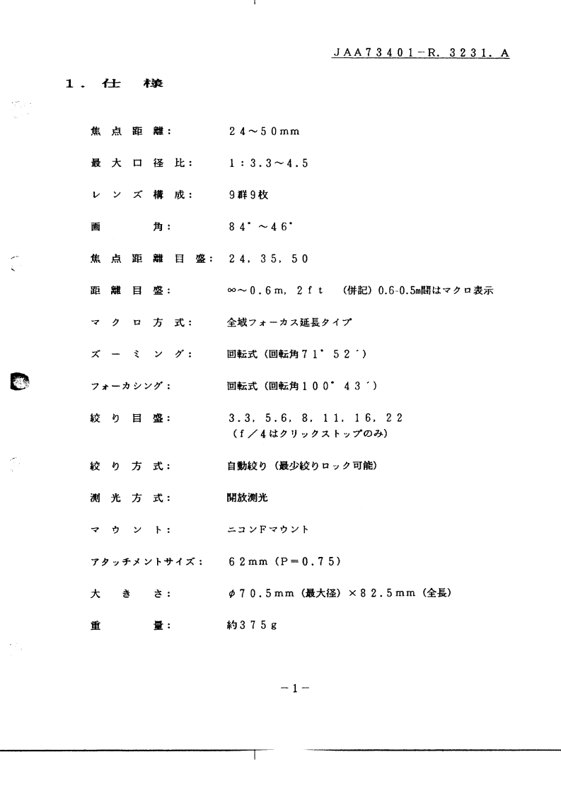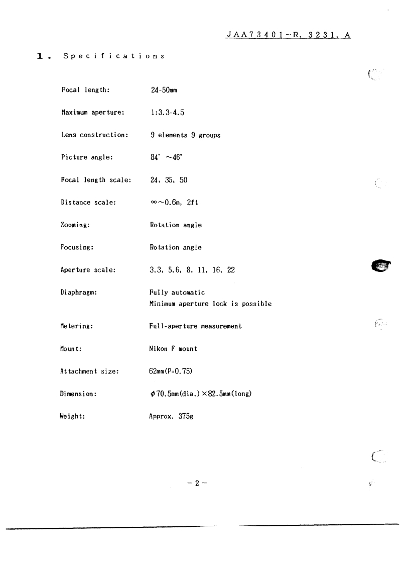 NIKON尼康数码相机AF-24-50mm-f3-5-4-5维修手册零部件手册找手册网23小时前发布关注私信0.58MB17页020NIKON尼康数码相机AF-24-50mm-f3-5-4-5维修手册零部件手册此内容为付费资源,请付费后查看¥19¥21黄金会员免费钻石会员免费立即购买您当前未登录!建议登陆后购买,可保存购买订单付费资源 第1页 / 共17页 第2页 / 共17页 第3页 / 共17页 第4页 / 共17页 第5页 / 共17页 第6页 / 共17页 第7页 / 共17页 第8页 / 共17页 第9页 / 共17页 第10页 / 共17页 试读已结束,还剩7页,您可下载完整版后进行离线阅读 THE ENDNikon 文本预览 JAA73401-R.3231.B作成承認印配布許可印GMAF Zoom Nikkor 24-50mm f/3.5-4.5AisPARTS LIST (REVISED-1)修理部品表(改酊一1)NONIKON CORPORATIONTokyo.JapanCopyright C1995 by Nikon Corporation.Previous edition copyright C1987All Rights Reserved.無断耘载苍禁式川 查看更多 收起部分 喜欢就支持一下吧收藏