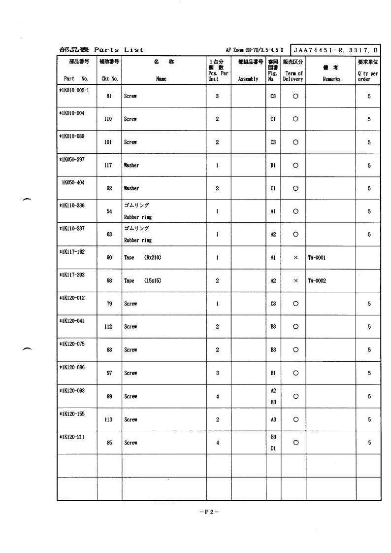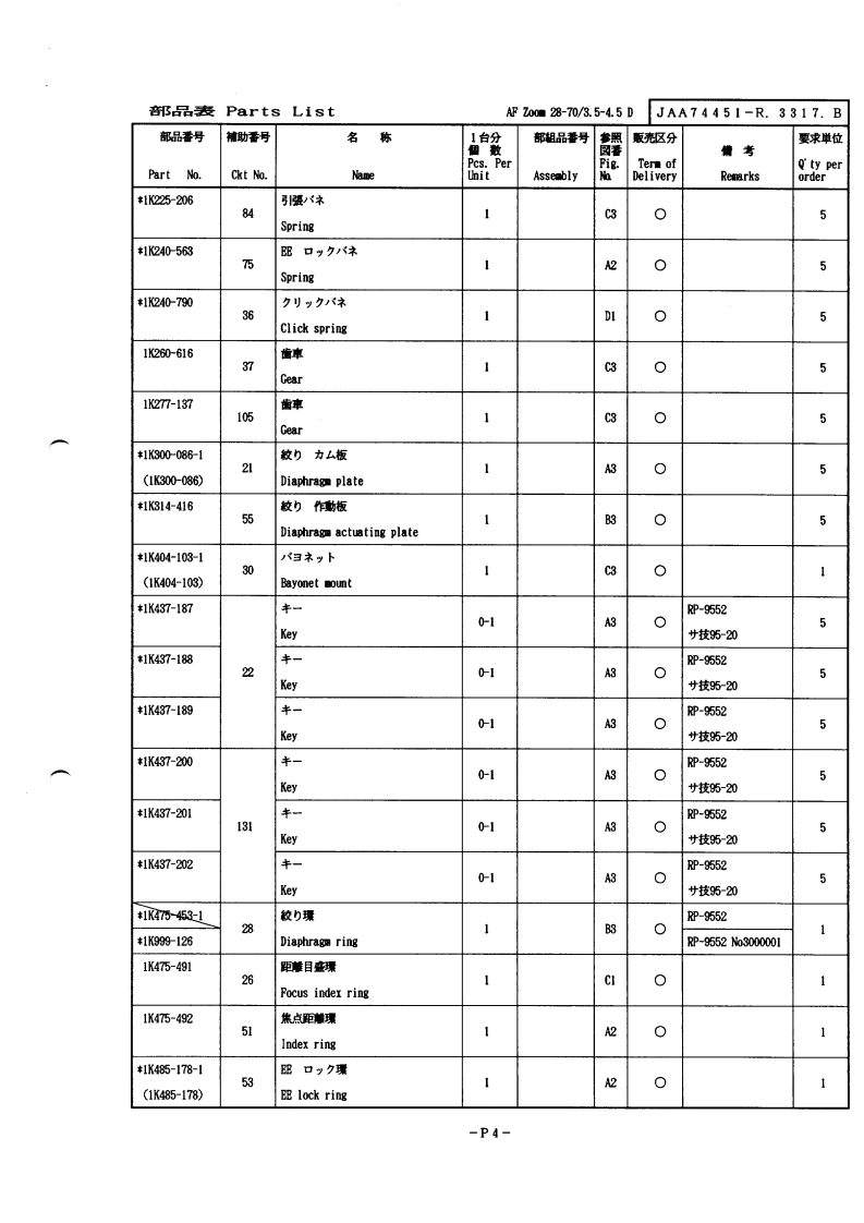 JAA74451-R.3317.B作成承認印配布許可印GMAF Zoom Nikkor 28-70mm f/3.5-4.5 DAisPARTS LIST (REVISED-1)修理部品表(改酊一1)NKO NIKON CORPORATIONTokyo.JapanCopyright©:995 by Nikon Corporation.Previous edition copyright CAll Rights Reserved.無断耘载苍禁式川Printed in Japan